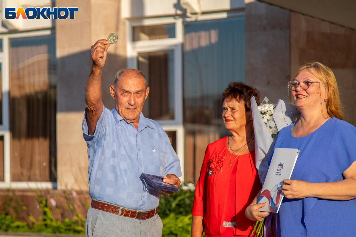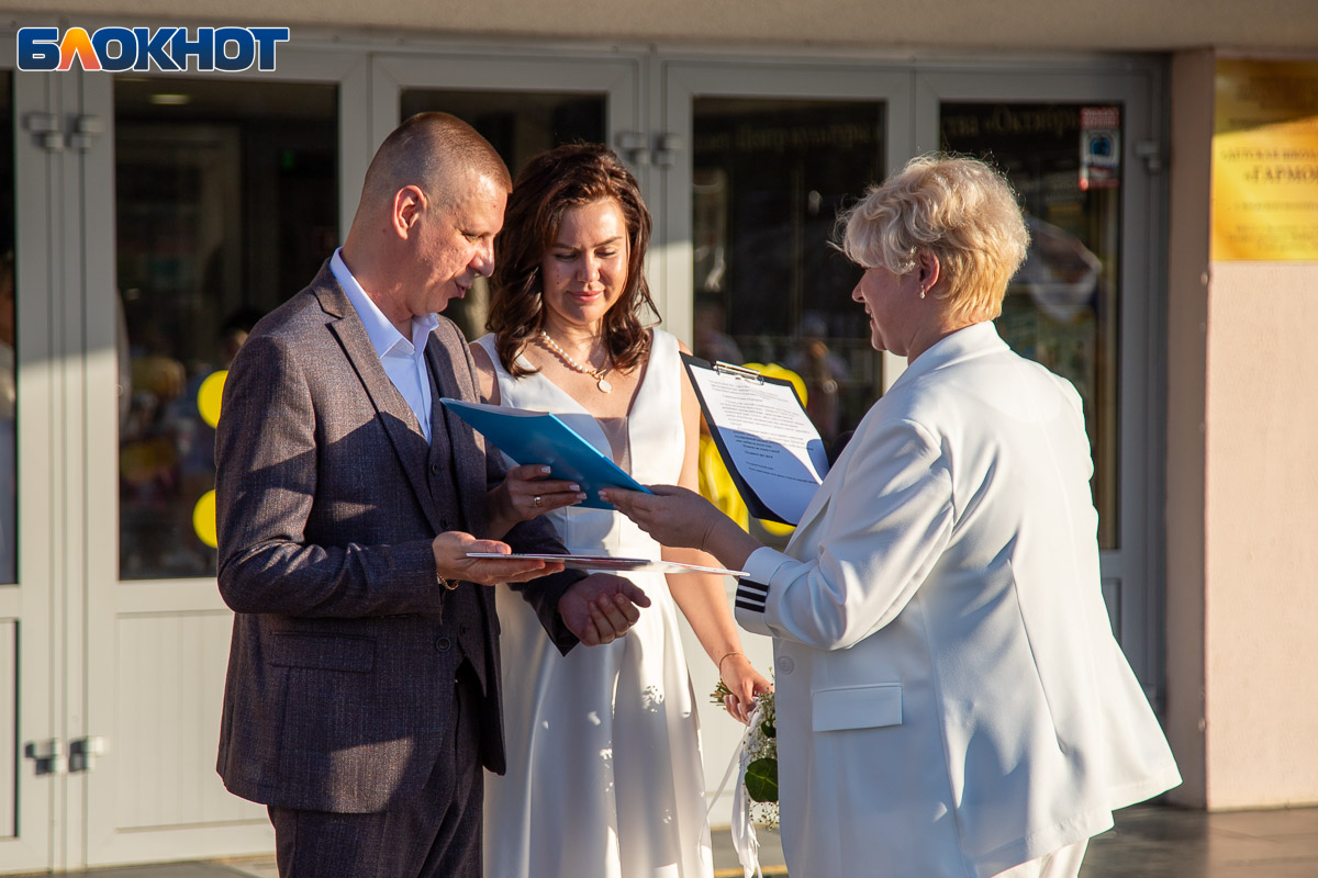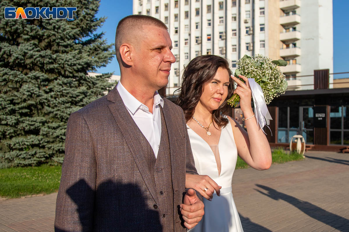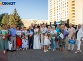 Во время концерта чествовали 11 семейных пар. Роман и Екатерина Борисовы зарегистрировали свой брак в день праздника – 8 июля 2025 года. Заведующая ЗАГС № 1 Марина Гончарова поздравила молодоженов с этим знаменательным событием и вручила благодарность главы Волжского Игоря Воронина.
