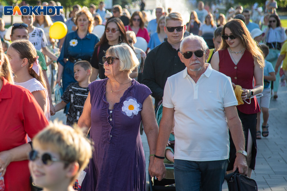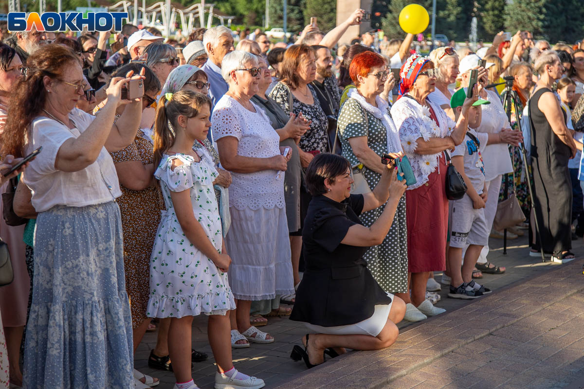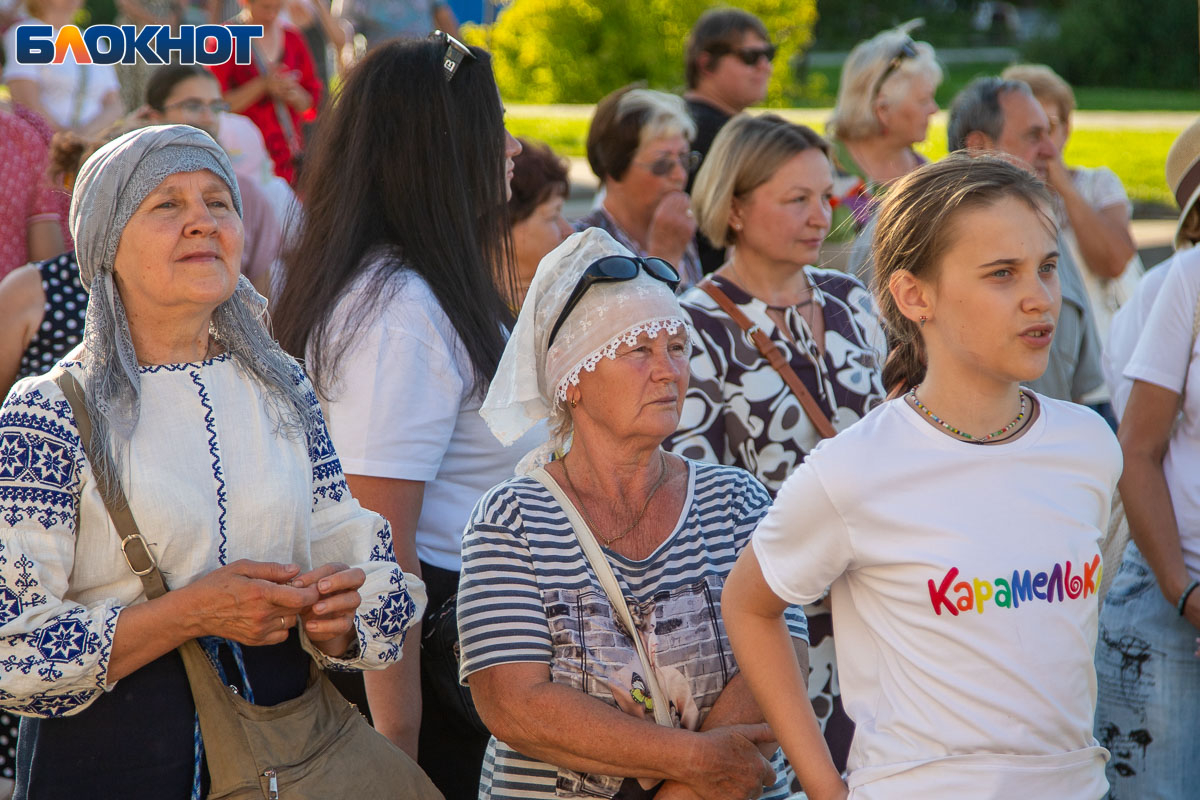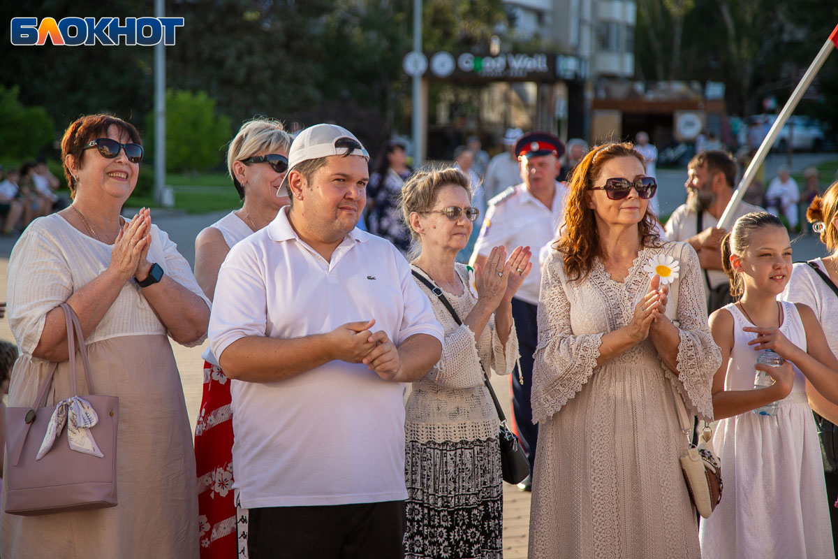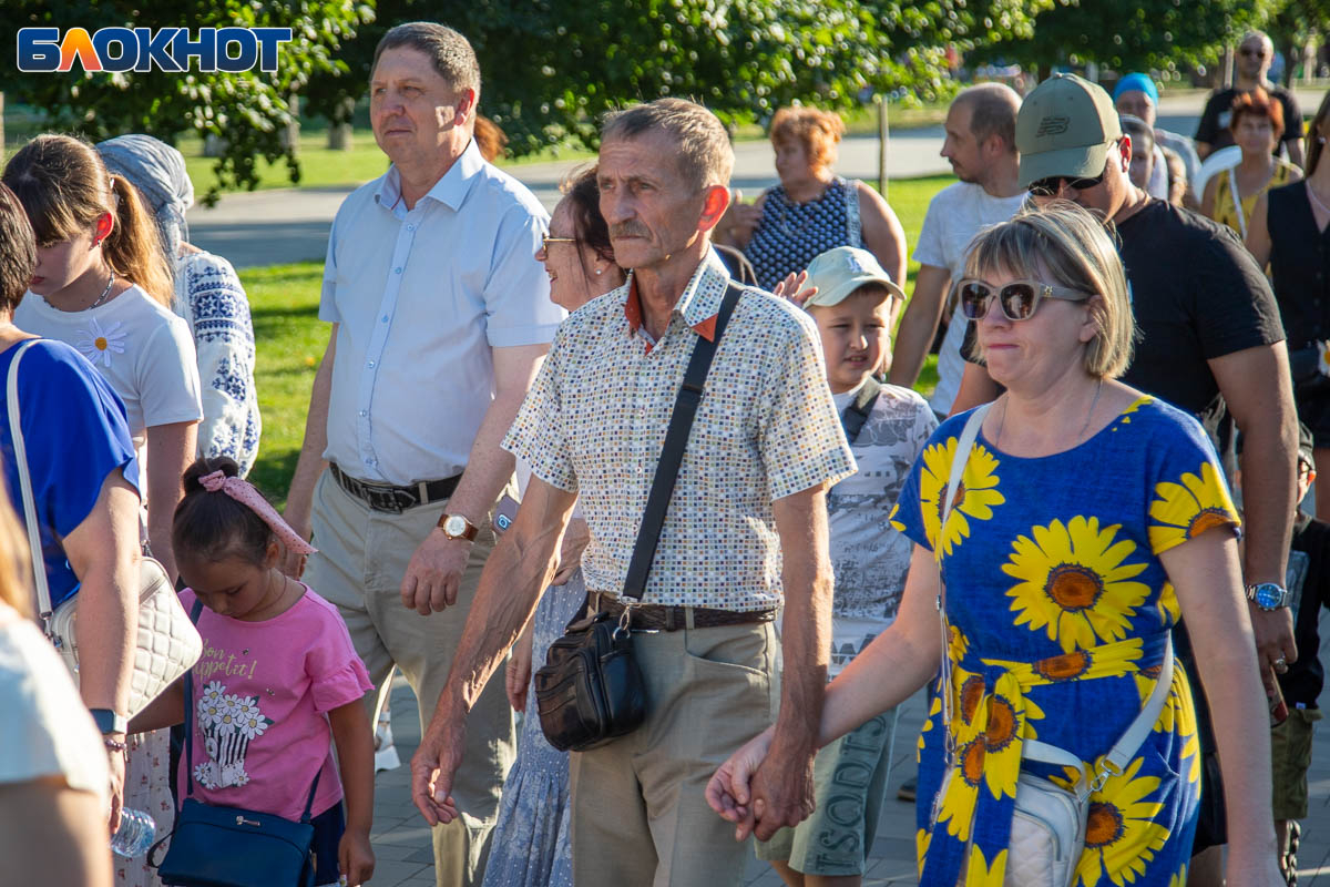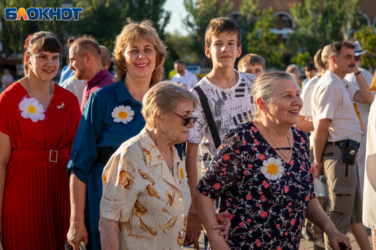 После шествия волжские семьи прибыли к парапету центра культуры и искусства «Октябрь». Здесь состоялся праздничный концерт и церемония чествования заслуженных семейный пар. Открыл концертную программу вокальный ансамбль духовенства Волжского «Ортодокс», солисты которого исполнили красивую песню «Ромашковые поля» в честь атрибута Дня семьи, любви и верности – цветка ромашки. С творческими вокальными и хореографическими номерами выступали также артисты центра «Октябрь».
