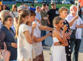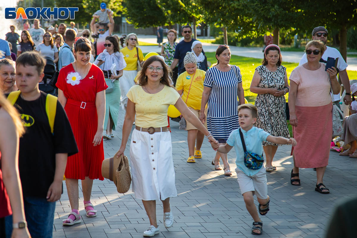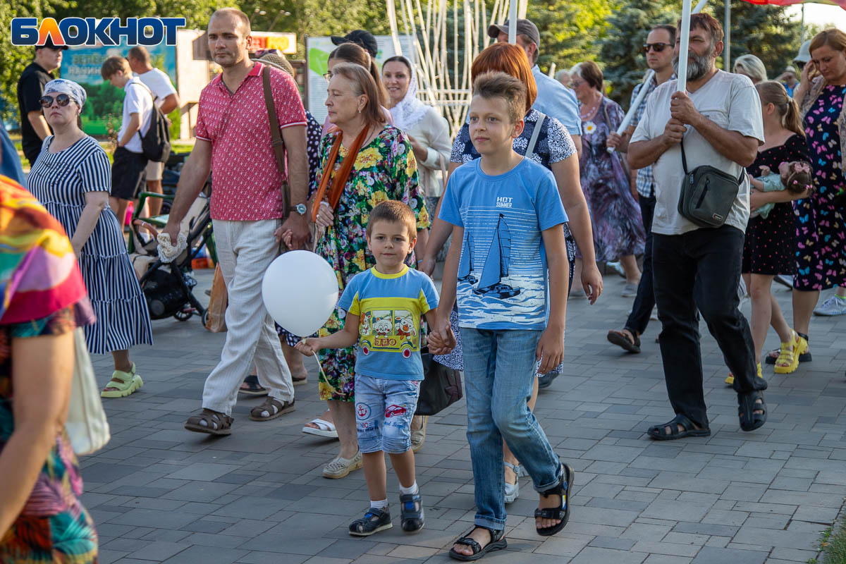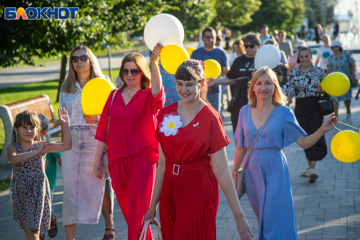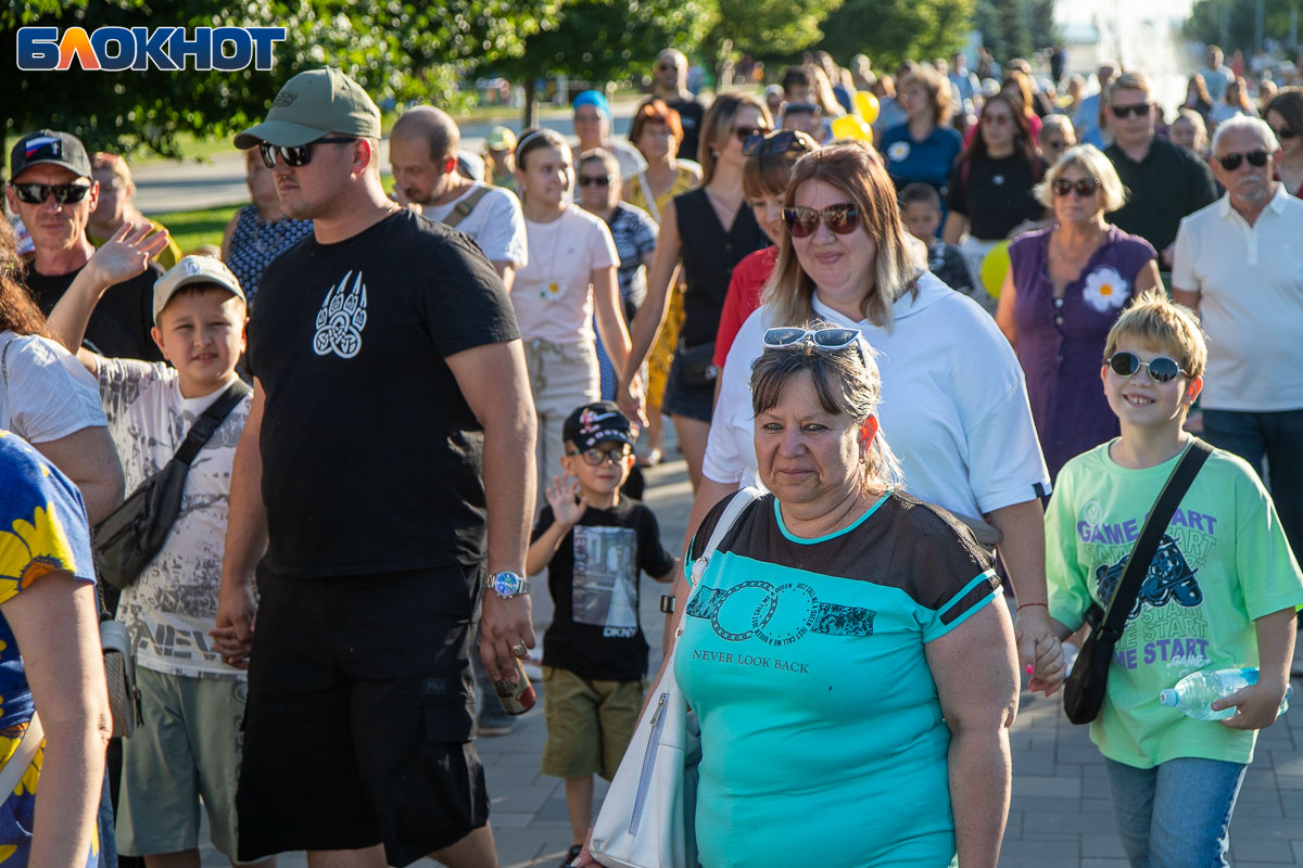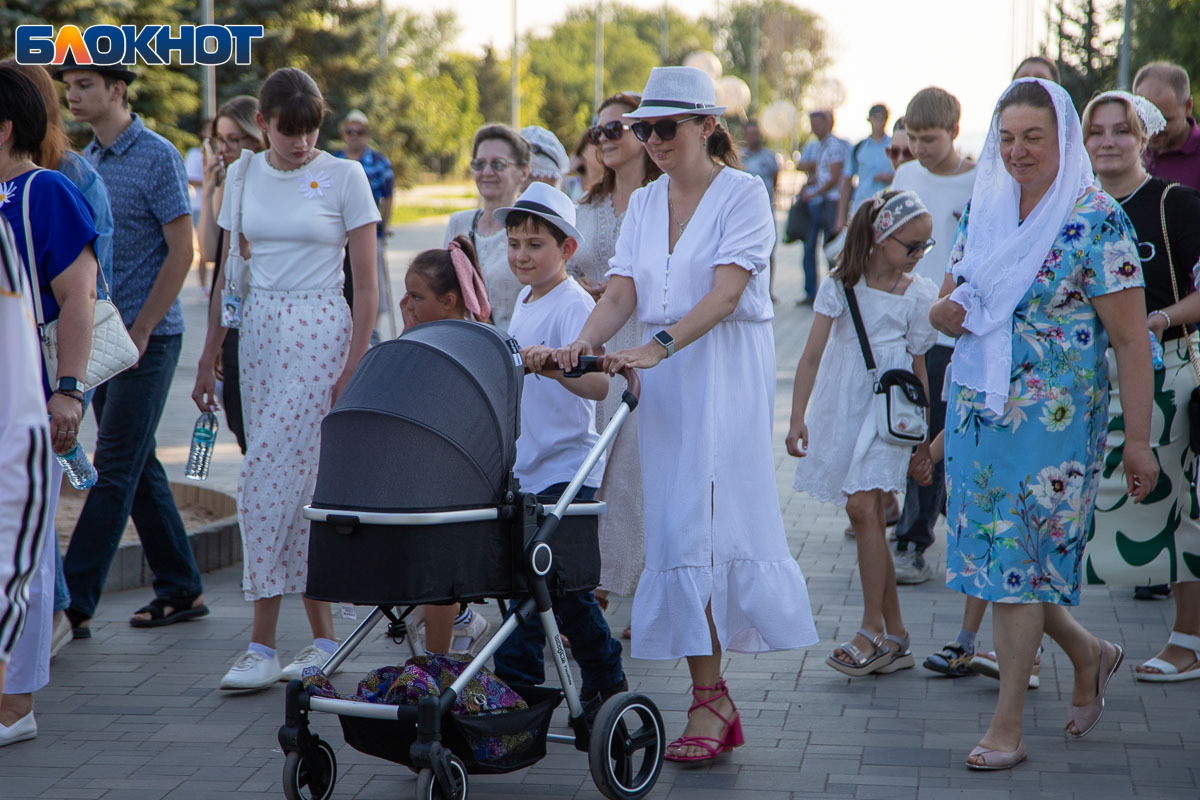 После шествия волжские семьи прибыли к парапету центра культуры и искусства «Октябрь». Здесь состоялся праздничный концерт и церемония чествования заслуженных семейный пар. Открыл концертную программу вокальный ансамбль духовенства Волжского «Ортодокс», солисты которого исполнили красивую песню «Ромашковые поля» в честь атрибута Дня семьи, любви и верности – цветка ромашки. С творческими вокальными и хореографическими номерами выступали также артисты центра «Октябрь».