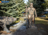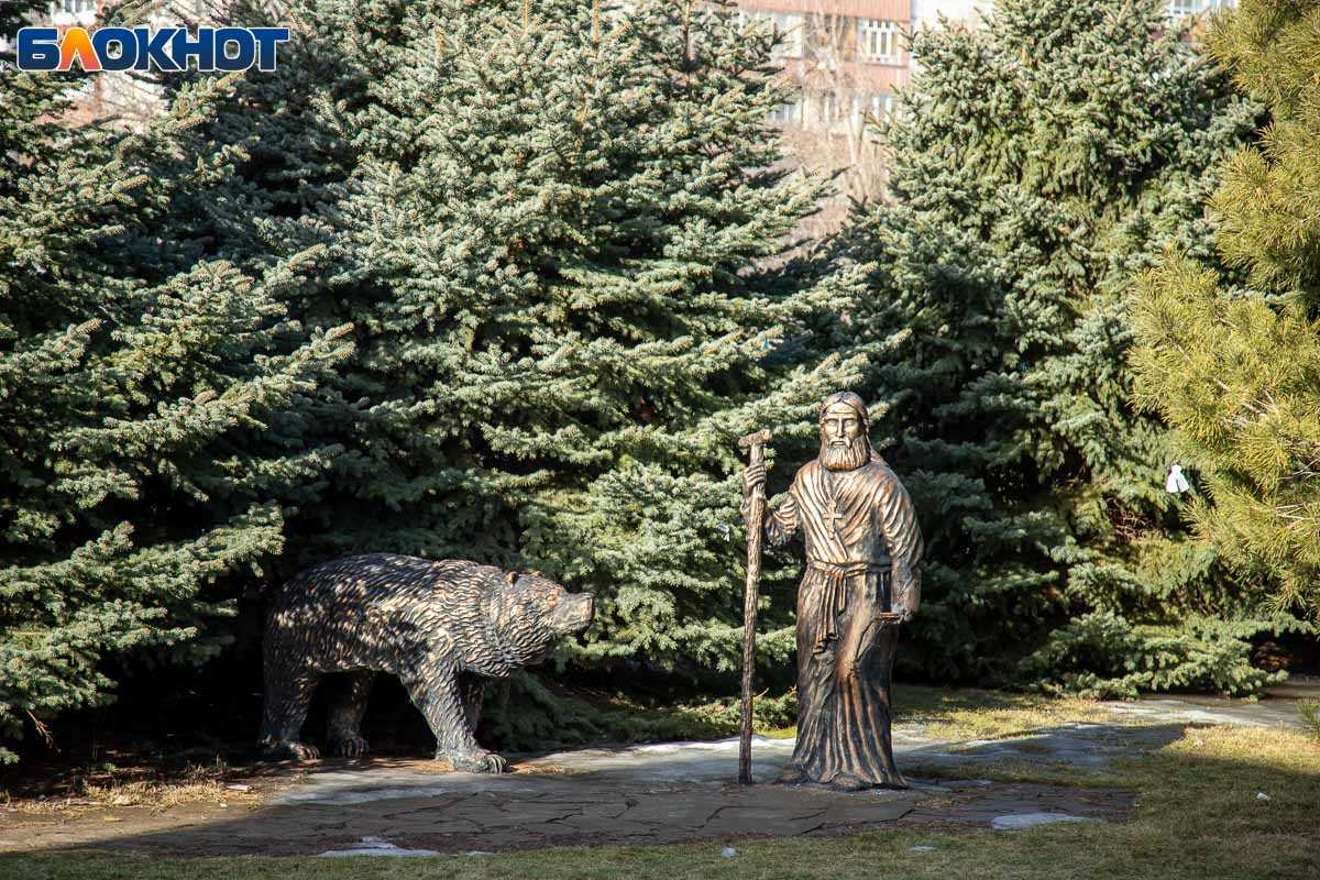 В день Крещения Руси, 28 июля 2020 года — в самый разгар первой волны пандемии — в храме на улице Мира, 109а, произошло тихое, но значимое событие. Здесь установили памятник преподобному Серафиму Саровскому. Скульптура изображает старца и его неизменного спутника — медведя, которого святой, по преданию, кормил с руки.