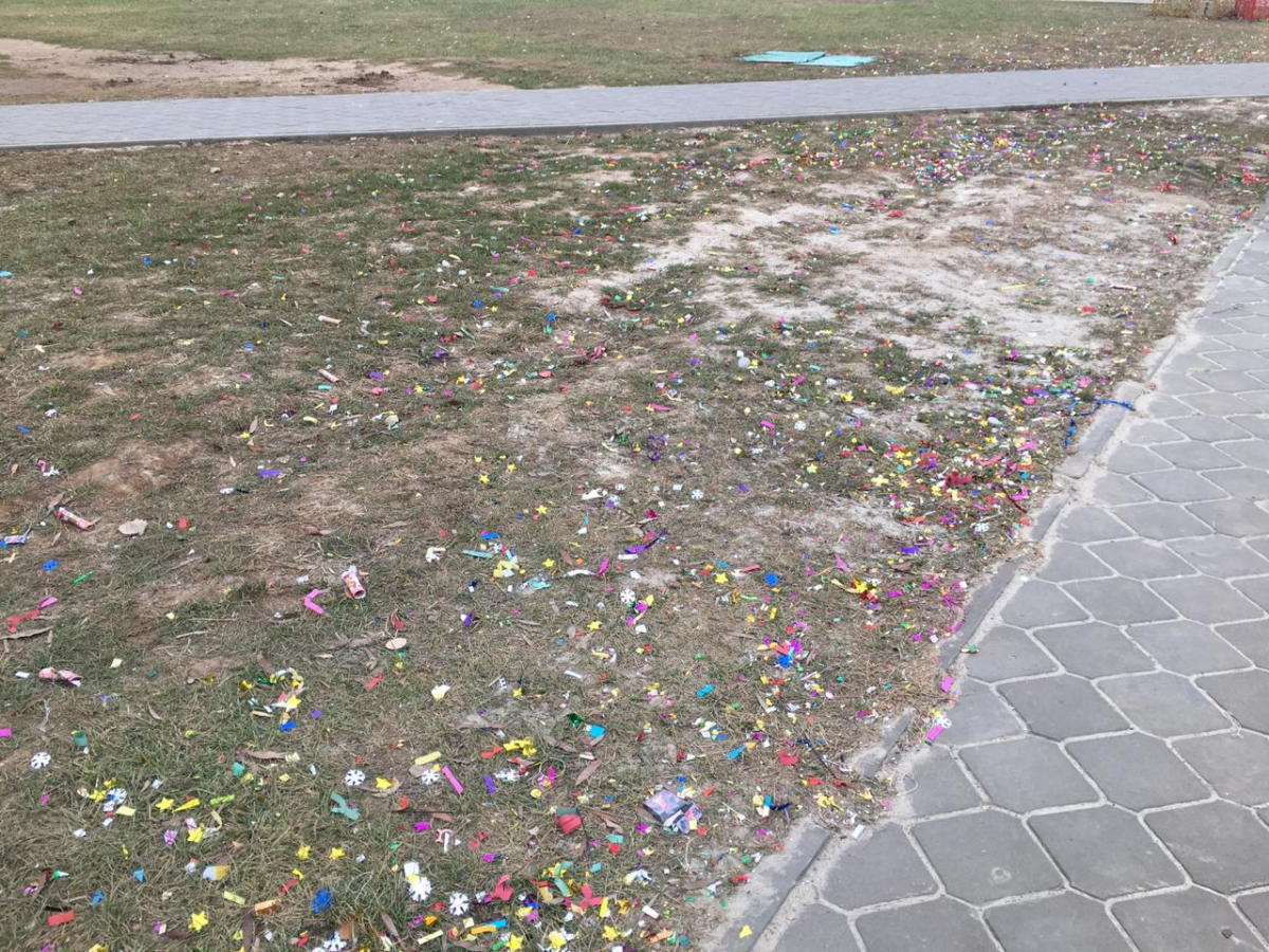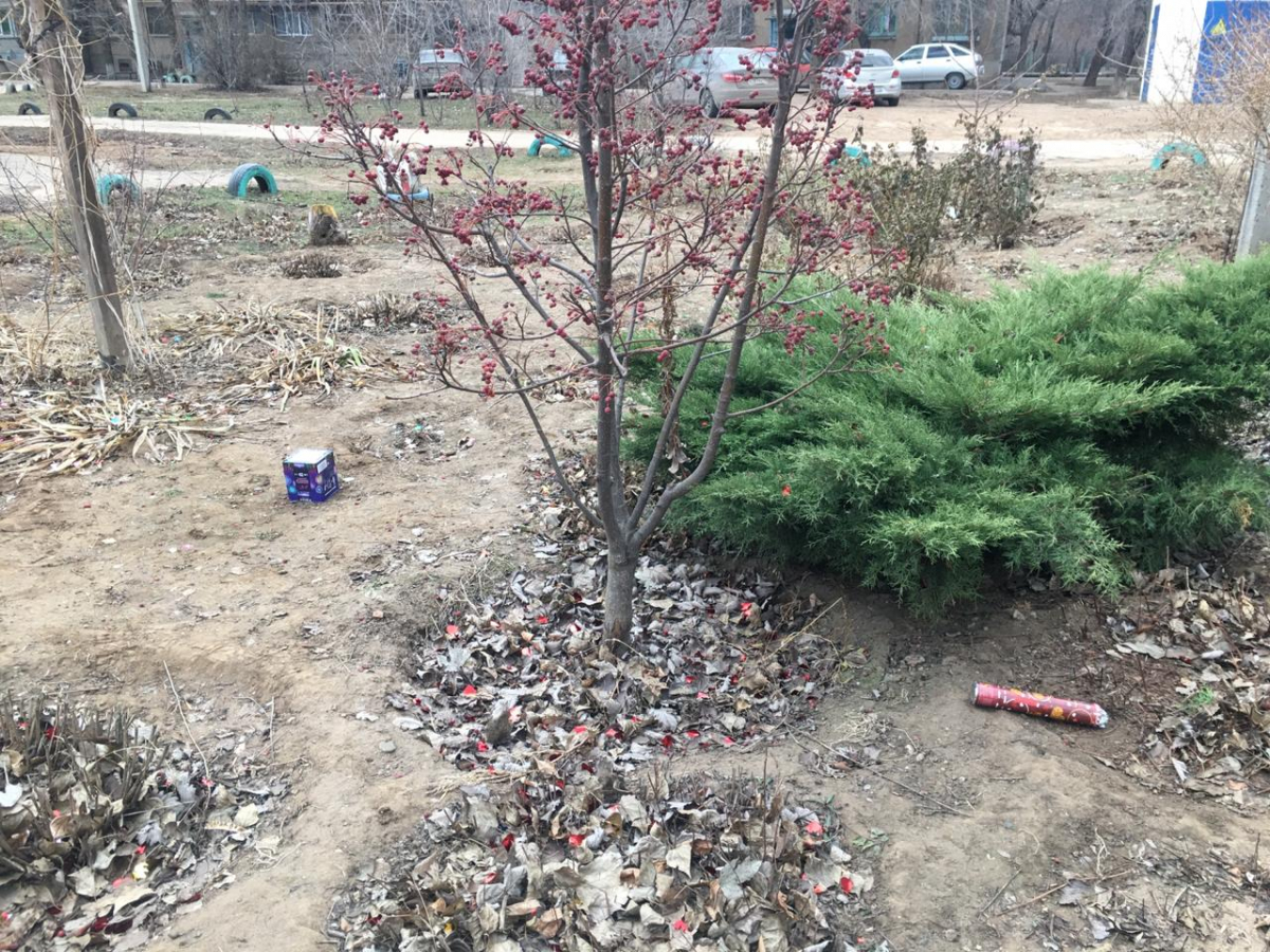 Ну и конечно, во дворах можно найти остатки от пальбы пиротехники. В некоторых местах до сих пор лежат коробки от фейерверков.