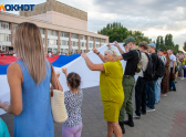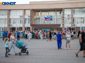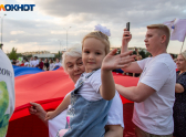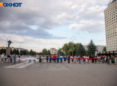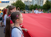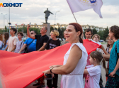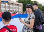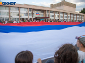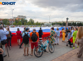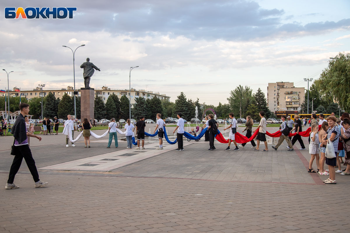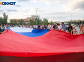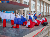 Но кульминацией дня стало торжество на площади Ленина. В 18:00 главная площадка Волжского заполнилась участниками зрелищного флешмоба, в ходе которого был развернут огромный российский триколор.