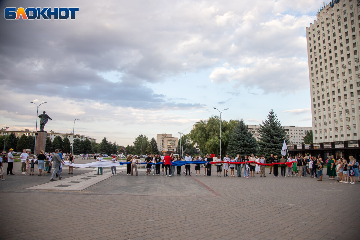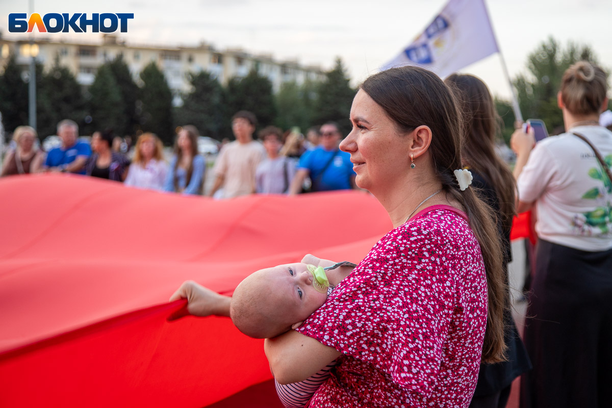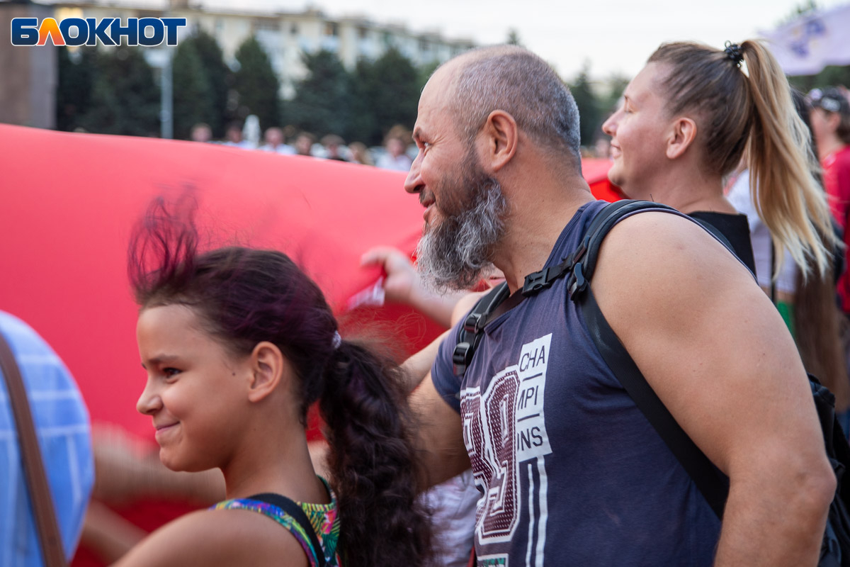 В масштабной акции приняли участие сотни волжан городские активисты, представители администрации, а также депутаты Волжской городской и Волгоградской областной думы, демонстрируя единство власти и народа. Жители города, сплотившись, с трудом удерживали гигантское полотно, которое гордо развевалось на ветру, символизируя мощь и величие России.