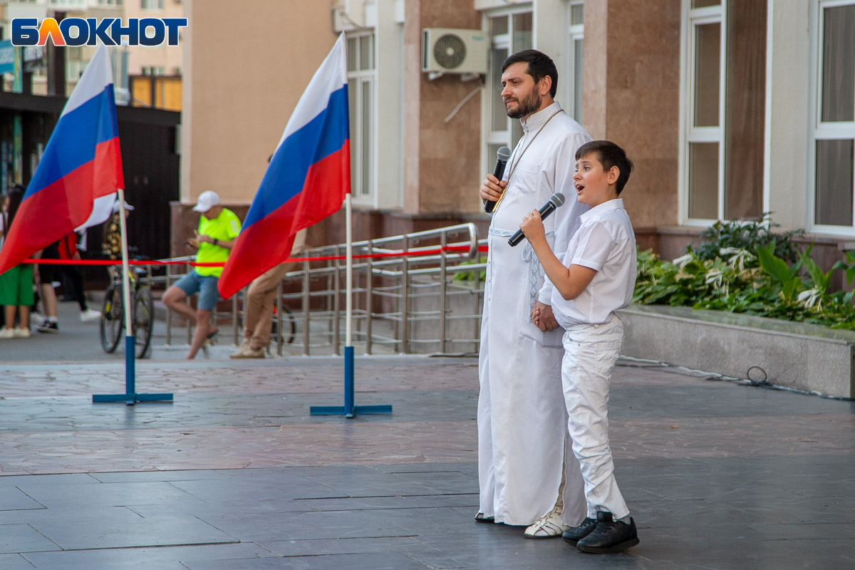 Затем на площади Ленина начался грандиозный концерт с участием лучших творческих коллективов центра культуры и искусства «Октябрь». Зрителей покорили виртуозные выступления студии танца «Арабеск», зажигательные номера школы брейк-данса «Фанки Манки» и грациозные композиции хореографического ансамбля «Ларец». Песни о России, свободе и любви к Родине звучали в исполнении ансамблей «Адажио», «Карамельки» и «Сударыня», а также солистов Вовы Сапожникова, Лизы Беловой, Сергея Тесленко, Александра Терентьева, иерея Иоанна Стукалина и его сына Луки.