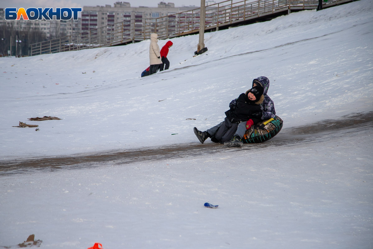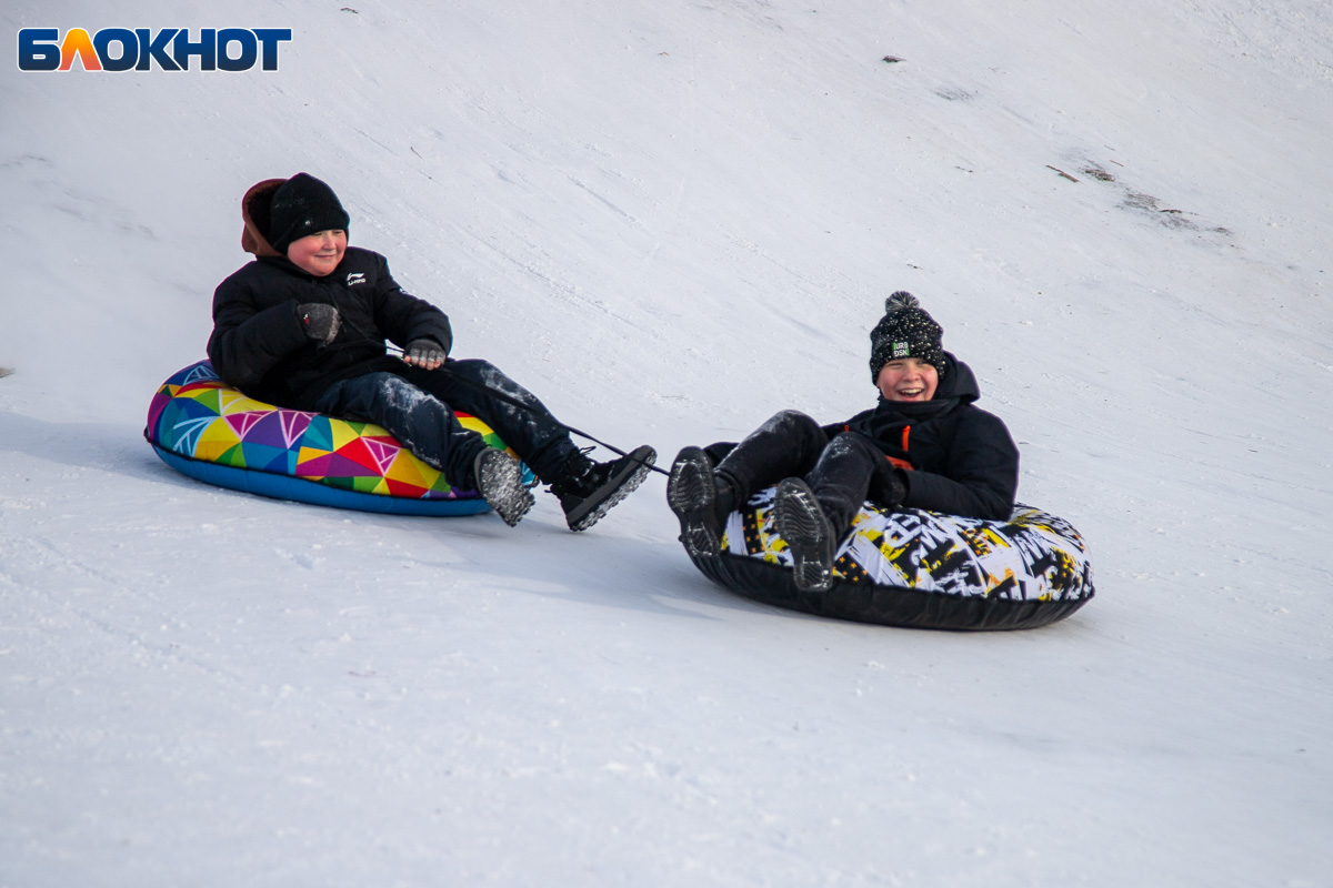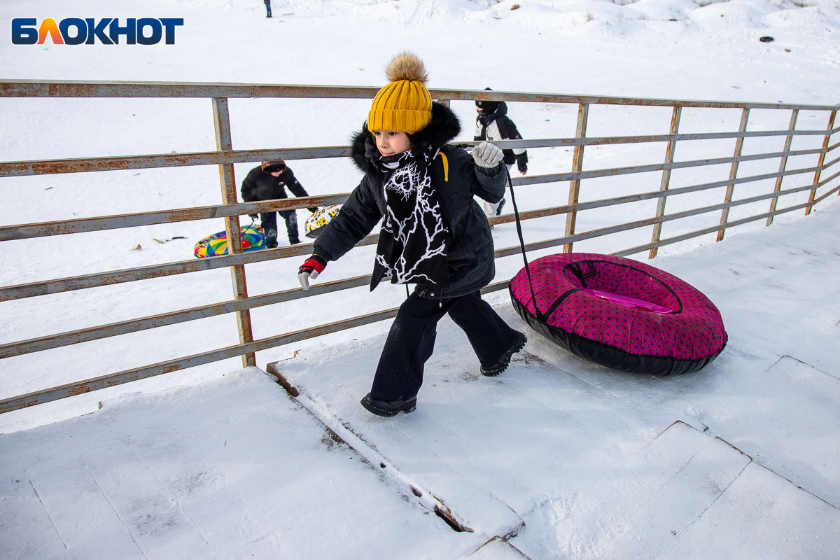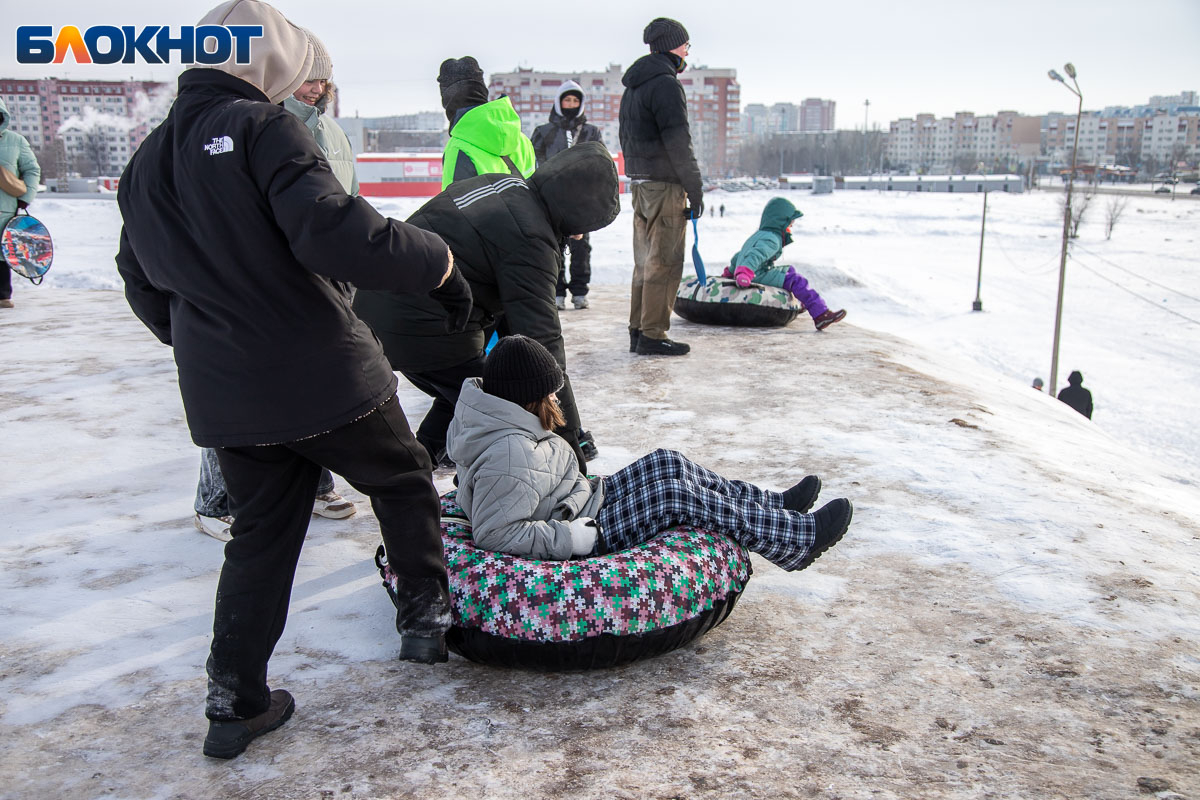 Смех, ватрушки и снег за шиворотом: как Волжский проводит идеальные зимние выходные на снежной горке
