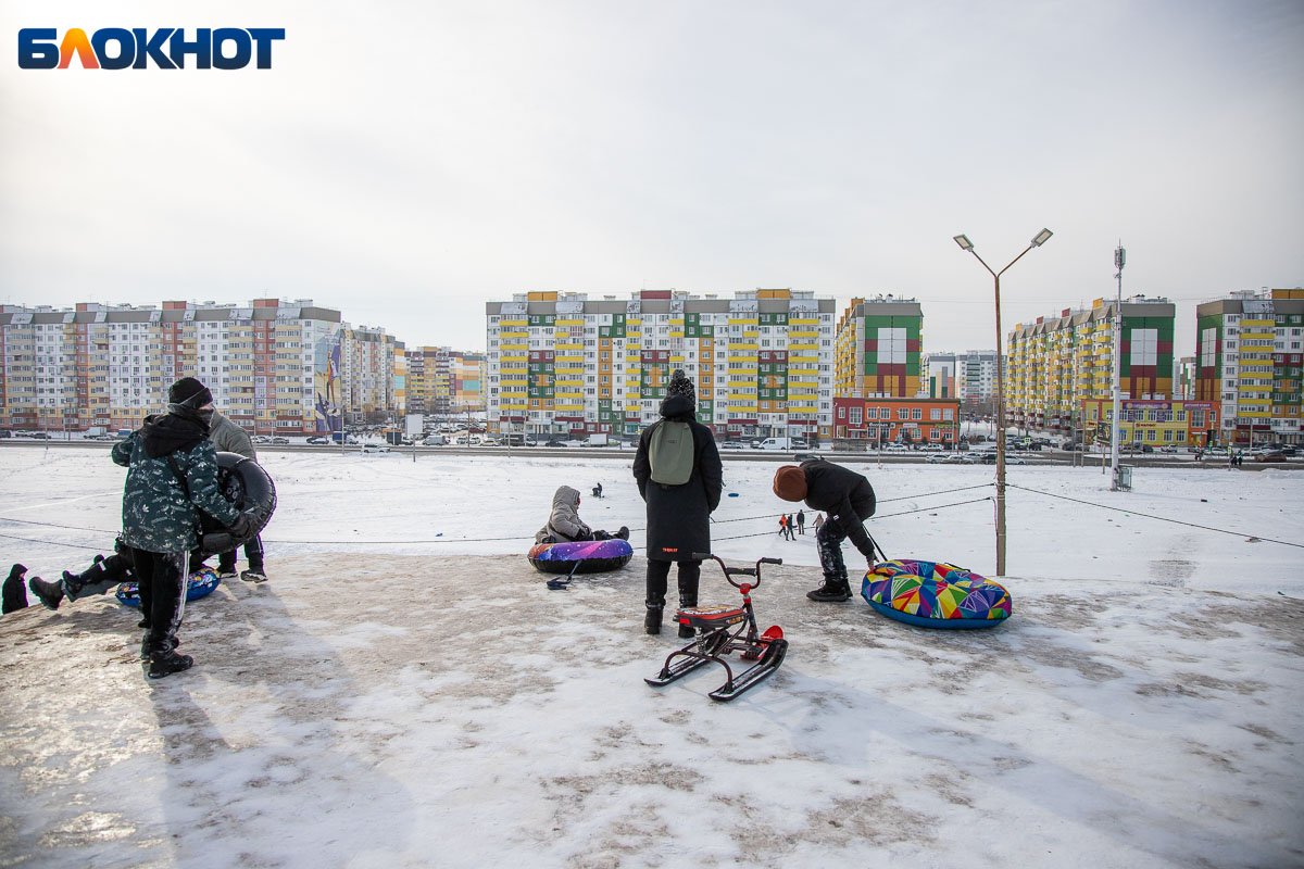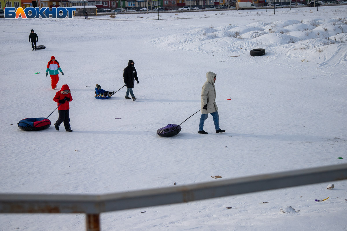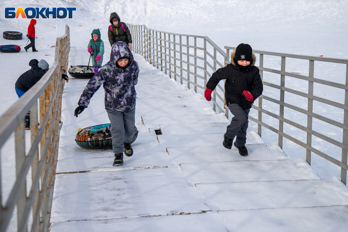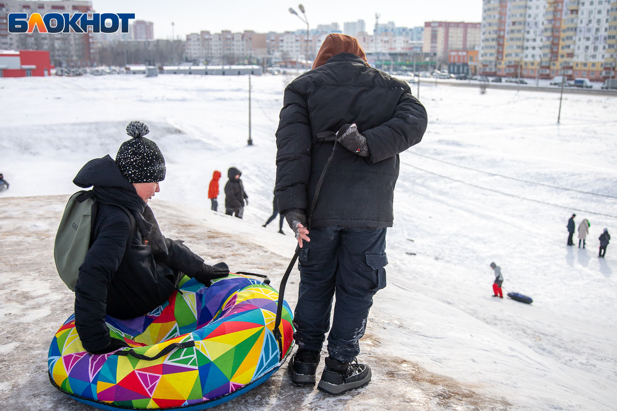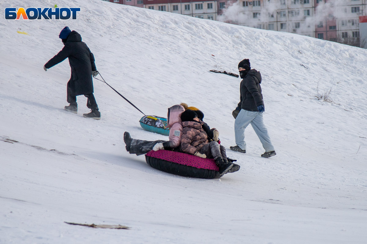 Смех, ватрушки и снег за шиворотом: как Волжский проводит идеальные зимние выходные на снежной горке