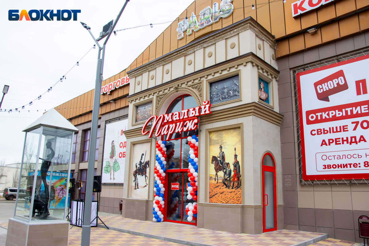 Фотокорреспондент «Блокнот Волжский» отправился в недавно открывшийся ТК «Малый Париж», чтобы посмотреть, что предлагает торговый центр.