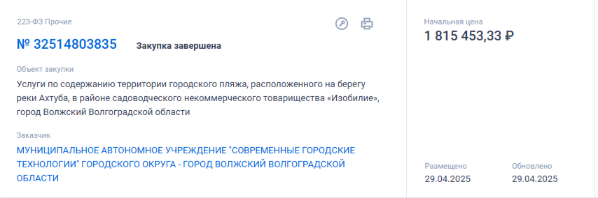 МАУ «СГТ» приступило к подготовке городского пляжа в СНТ «Изобилие» к купальному сезону. С 1 мая предприятие заключило договор с единственным подрядчиком на содержание территории до 31 декабря 2025 года. Сумма контракта превышает 1,8 млн рублей.