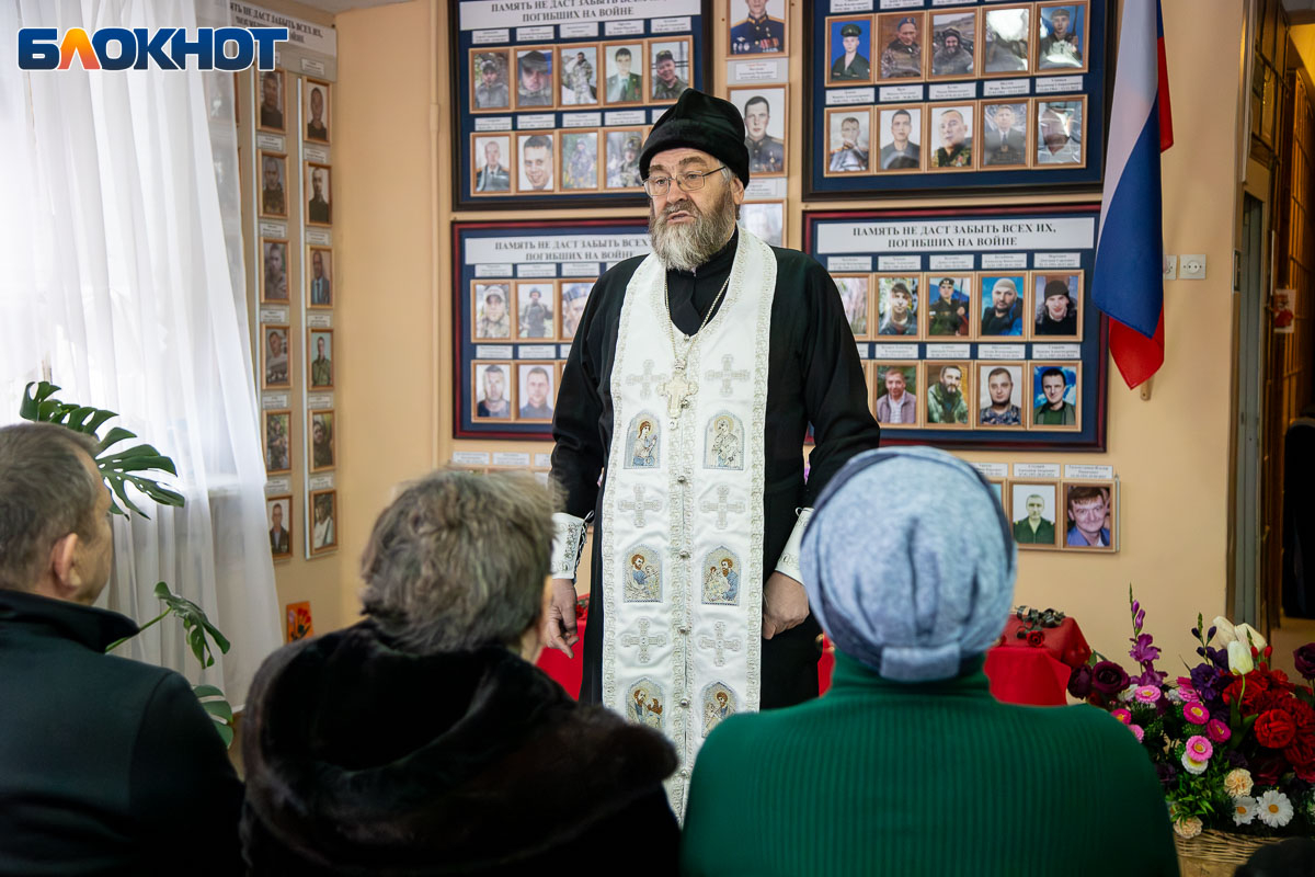 В 25-м микрорайоне Волжского, по адресу Оломоуцкая, 36, 22 января, прошла особо трогательная встреча. Здесь, по инициативе местного Совета ветеранов, состоялась лития по воинам, погибшим в ходе специальной военной операции, и молебен о здравии их близких. Богослужение провёл отец Пётр Симора из храма Серафима Саровского. Среди собравшихся — семьи, чьи сыновья и мужья не вернулись домой, те, кого не обошла стороной боль утрат и разлук, участники боевых действий, активисты. Моменты этой общей молитвы, личной, непарадной церемонии памяти запечатлел фотокорреспондент «Блокнота Волжский» Александр Агафонов.