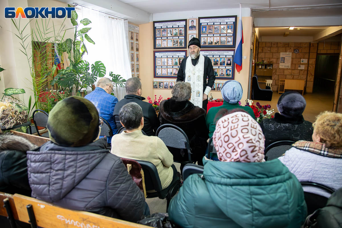 «Очень много приходит к нам родителей, вдов. И решили собрать, пригласили батюшку, чтобы он отслужил молебен за упокой наших ребят и за здравие родителей, вдов и всех присутствующих», — рассказал Владимир Александрович.