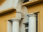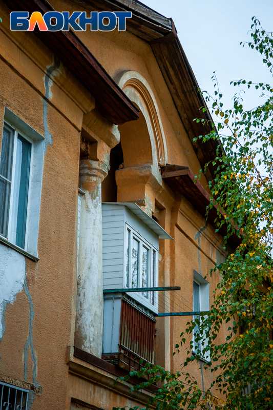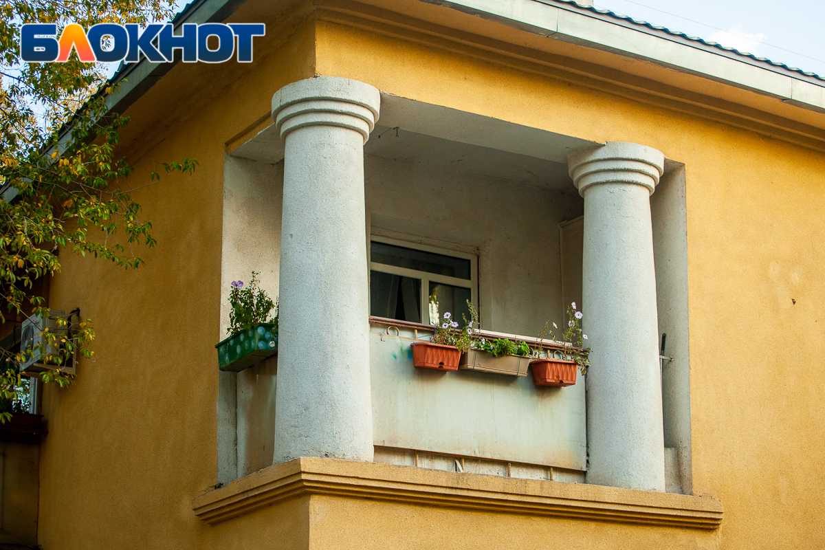 Волжский начали застраивать в 1951 году. В это время в архитектуре страны правил сталинский ампир, ему характеры элементы барокко, позднего классицизма, постконструктивизма, ар-дека и неоготики. Здания и помещения в этом стиле отличаются громадностью и величием. Конечно, не все балконы, арки, оконные проемы дошли до нас в этом стиле, но многие балконы сохранили колонны, балюстрады, отчего балкончики домов выглядят не столько уютными, но засотряющими на себе внимание. Их внешний вид отсылает нас к Древней Греции (однако некоторые балконы выглядят так, как будто они действительно с того времени).