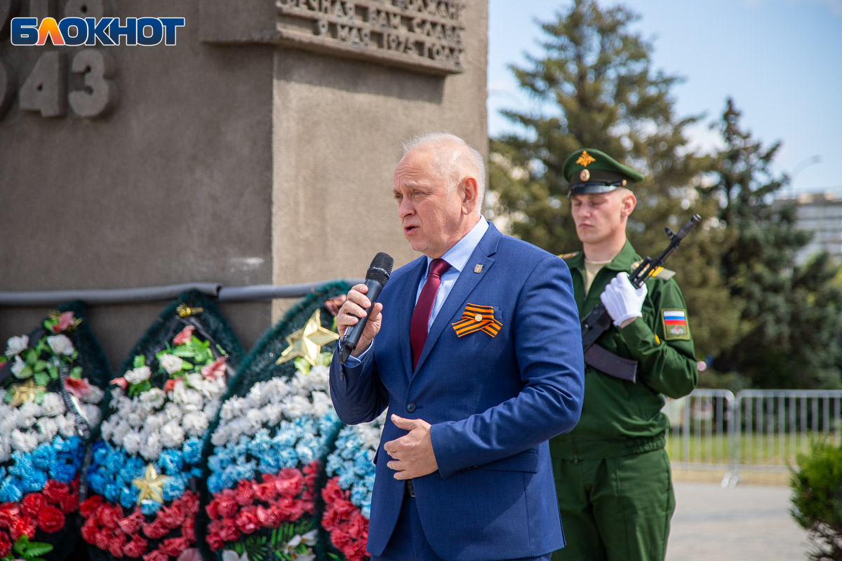 Перед церемонией возложения цветов к памятникам участников Великой Отечественной войны глава города Игорь Воронин произнес речь.