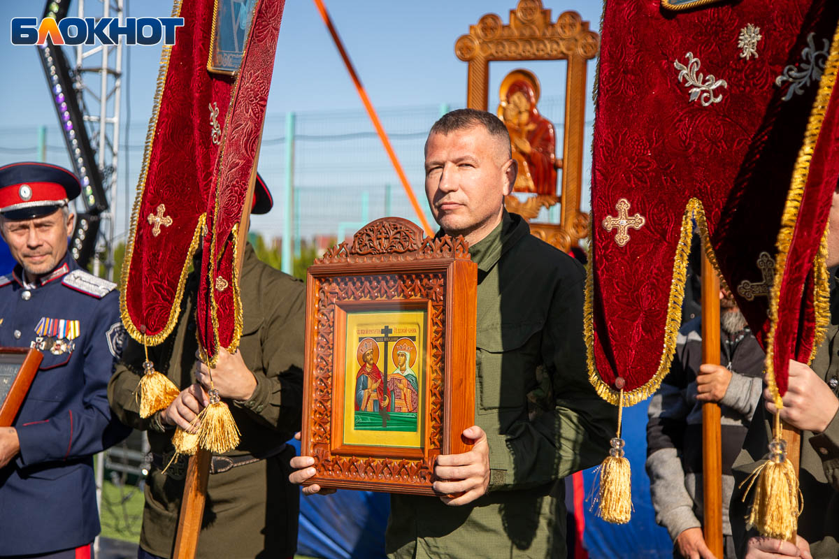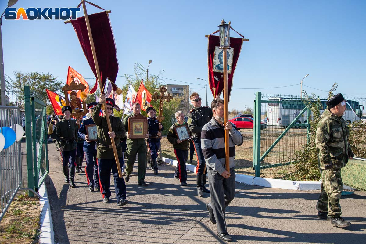 Фестиваль открылся традиционным крестным ходом от храма святых Константина и Елены. С православными песнопениями священнослужители, представители городской администрации и областного комитета по делам национальностей и казачества, казаки, учащиеся казачьих классов школы №15 и верующие волжане и гости города прошли к площадкам на территории «Восхода», где у сцены состоялся молебен перед Донской иконой Божьей матери. Настоятель храма и один из инициаторов фестиваля, иерей Георгий Надюк, стоял у истоков праздника и поддерживает его проведение с самого начала.