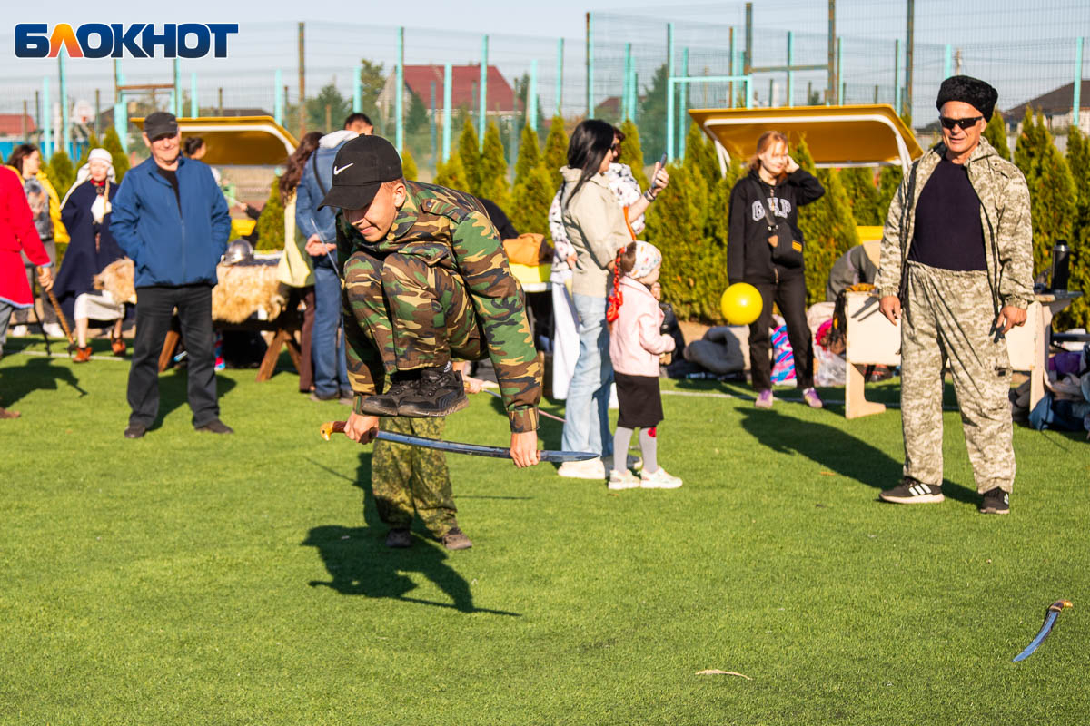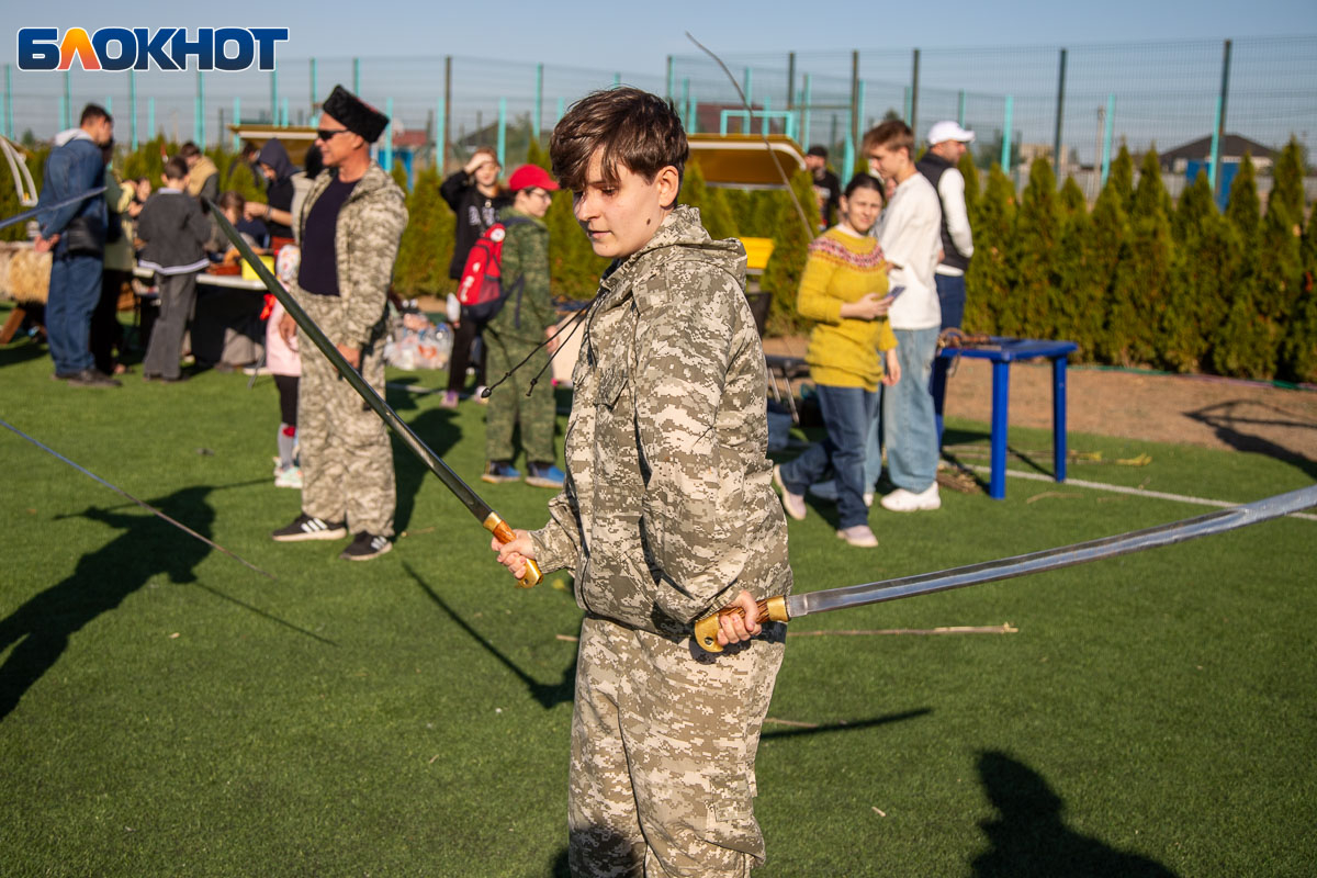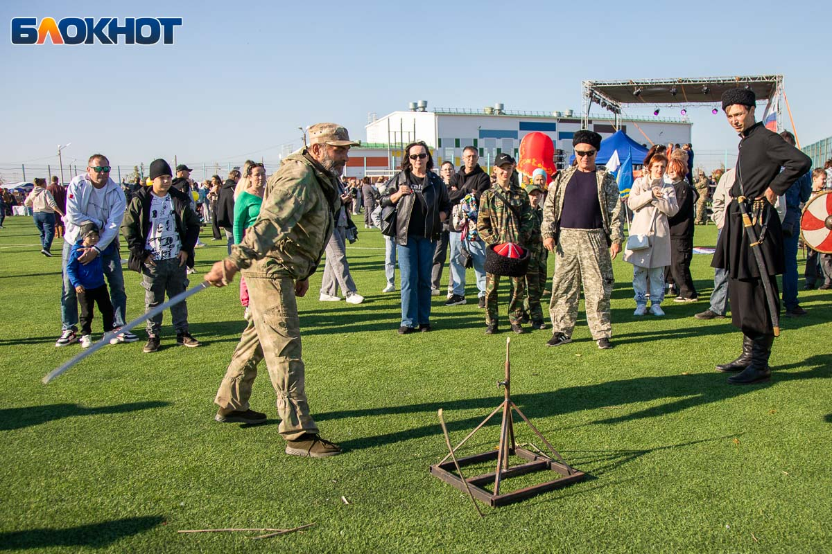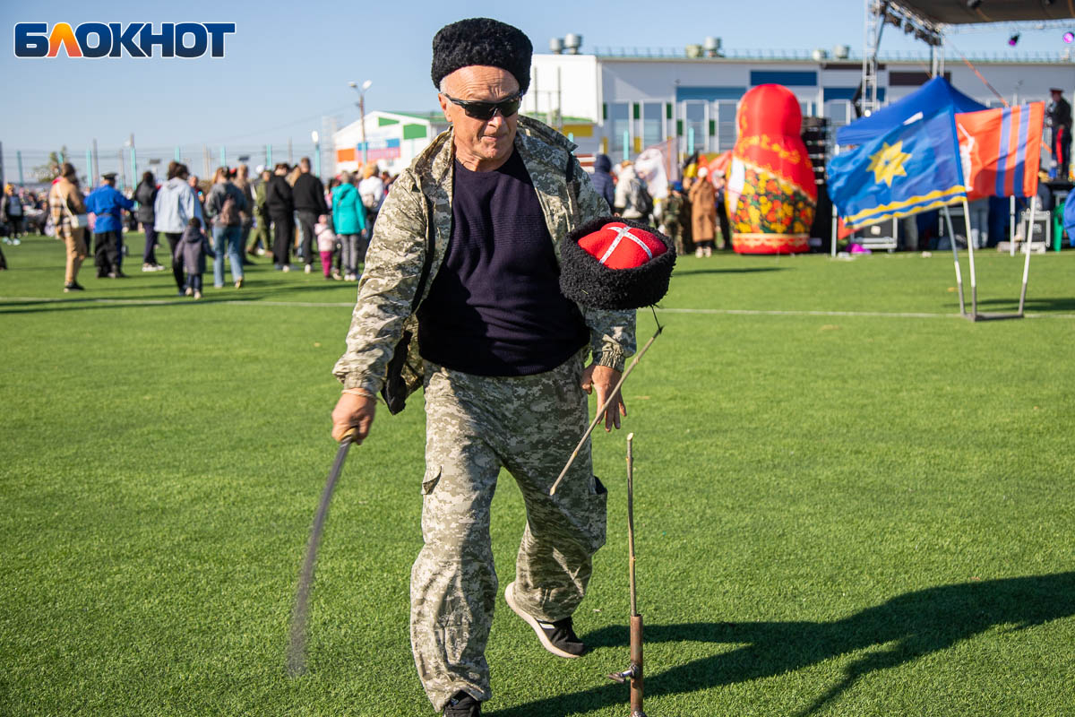В спортивном центре «Восход» Краснооктябрьского 4 октября прошел юбилейный Константиновский фестиваль казачьей культуры и быта. Событие, которое уже десять лет проводятся по инициативе казачества и при поддержке администрации города и Калачевской епархии, вновь объединило разные поколения и привлекло сотни жителей Волжского, Волгограда и соседних районов. С фотоаппаратом наперевес фотокорреспондент редакции «Блокнот Волжский» Александр Агафонов запечатлел самые эффектные кадры буквально на лету: метание ножей, фланкировка шашкой, праздничные танцы и искренние эмоции гостей.