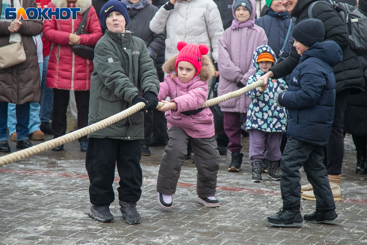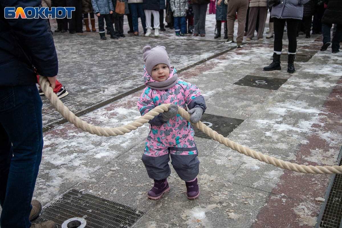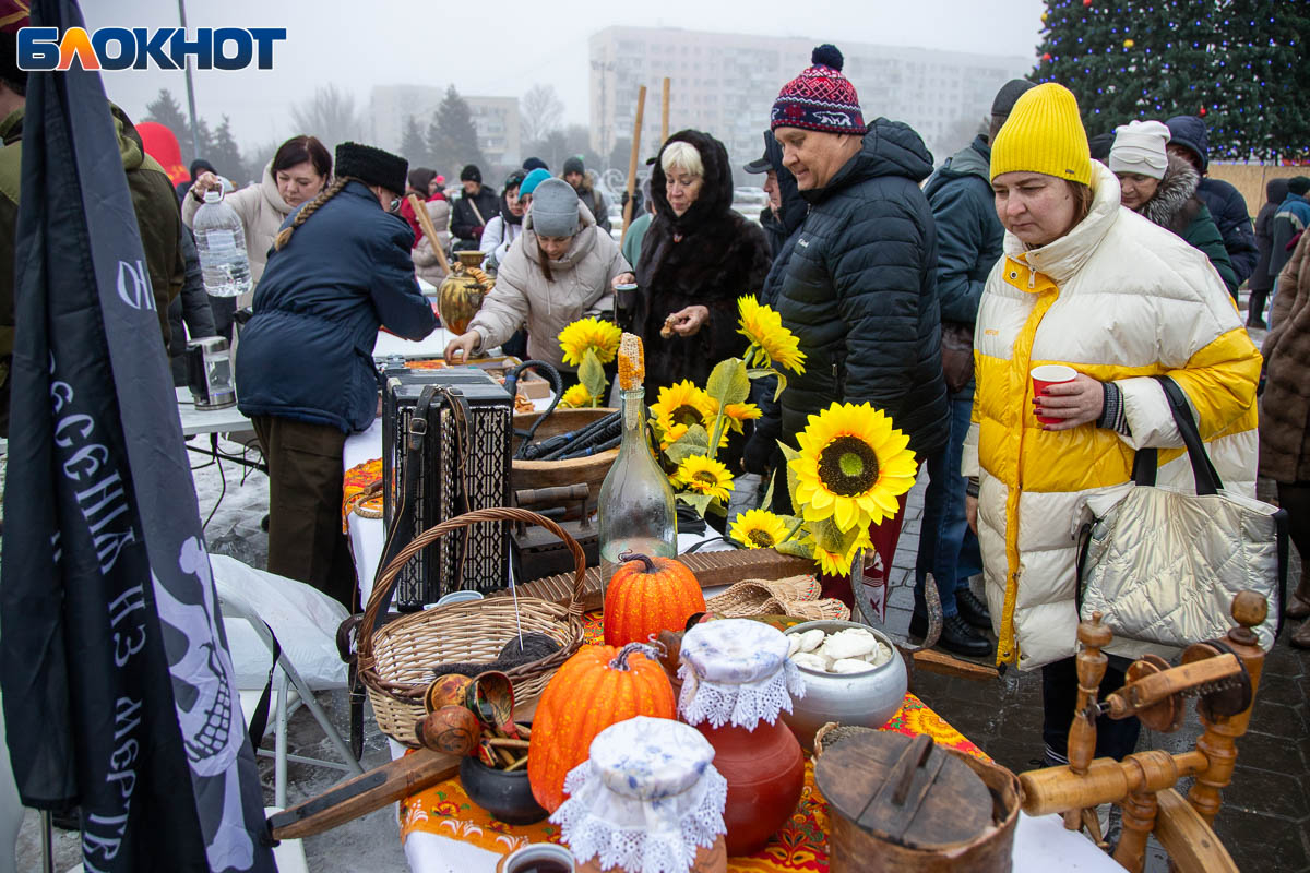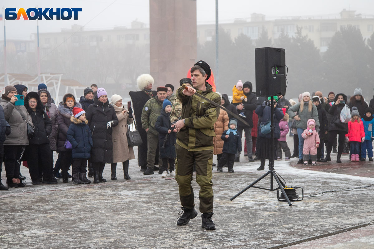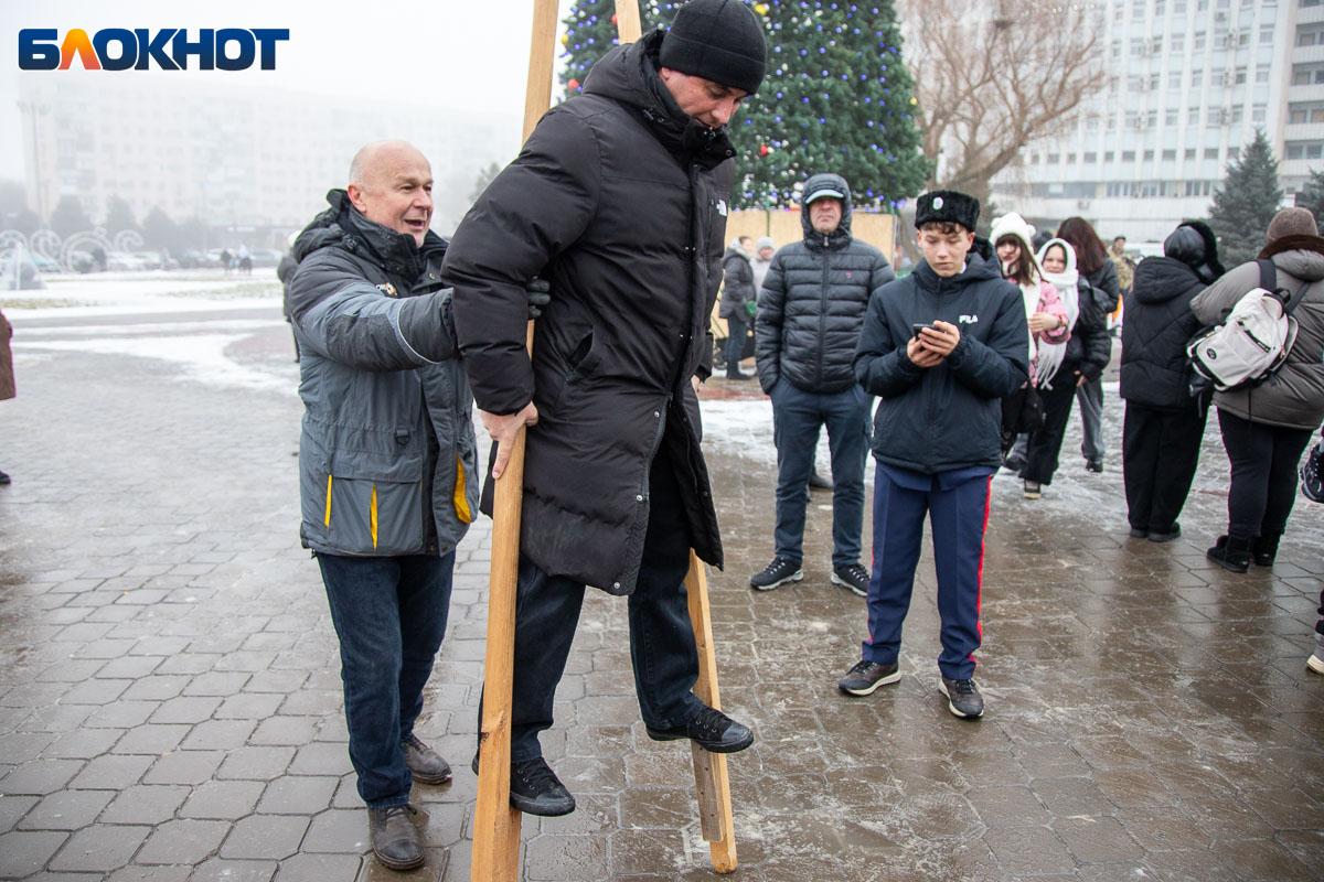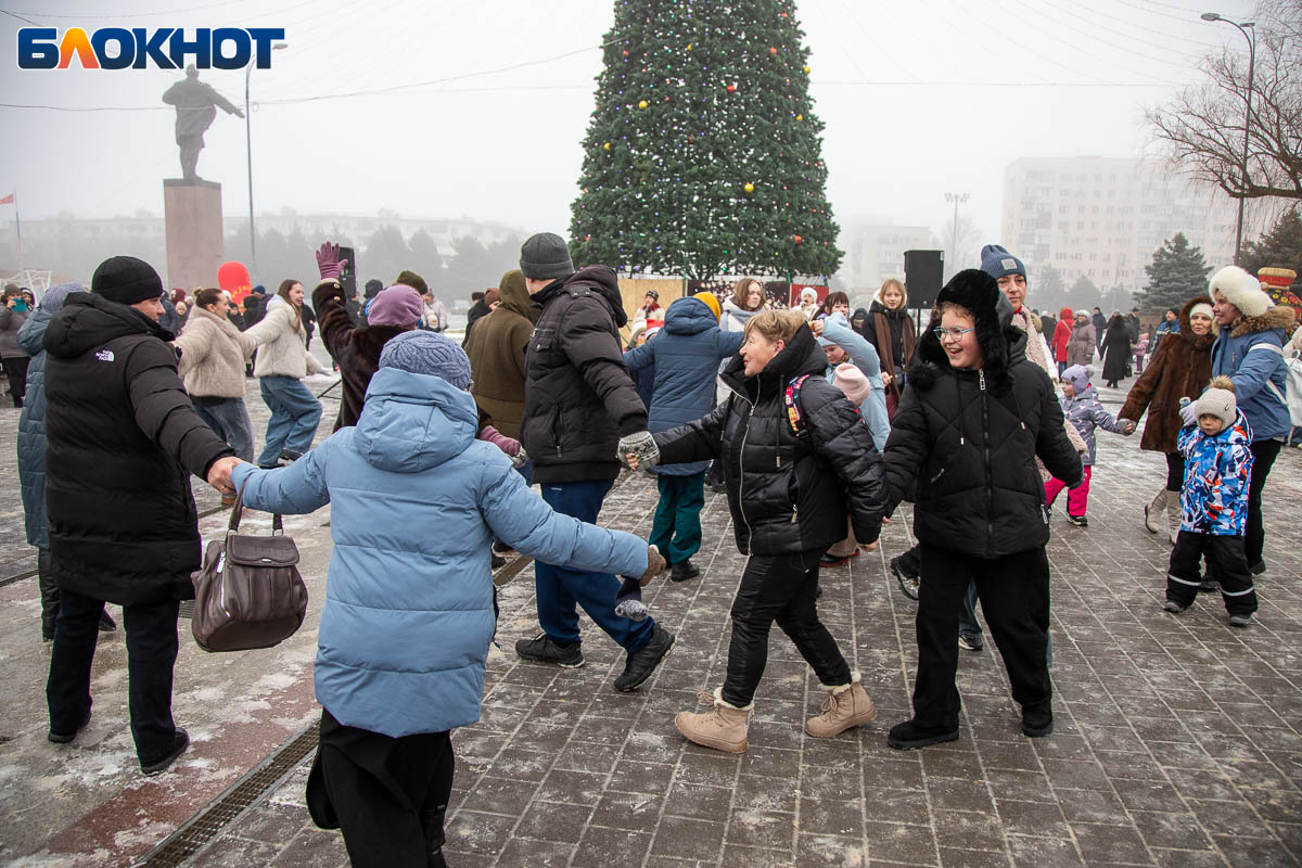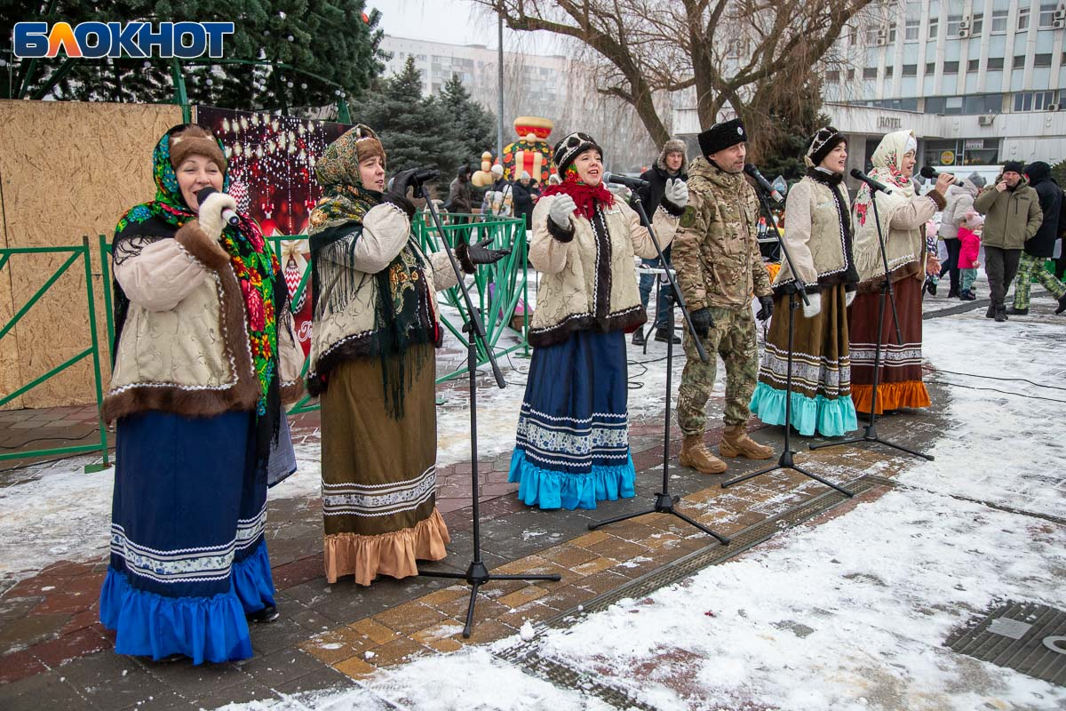 В этом году площадь погрузилась в аутентичную атмосферу. Гостей ждала ярмарка сувениров, угощения и горячий чай из самовара. Особый колорит создавали традиционные забавы: хороводы, в которые активно включались и дети, и взрослые, перетягивание каната, бег в мешках и даже бои подушками на бревне. Визитной карточкой праздника стал казачий Дед Мороз, чей костюм украсили погоны и шевроны.