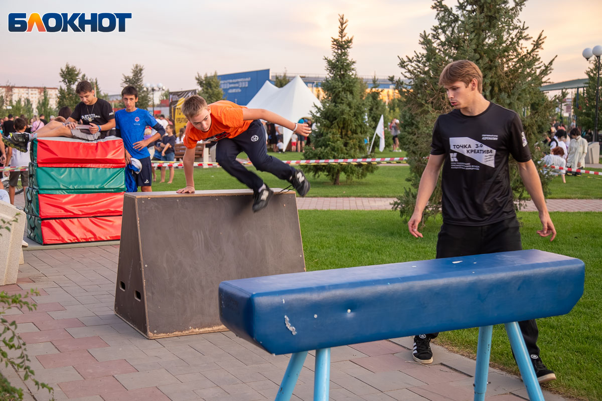 Более 500 участников и российских звёзд воркаута и паркура собрались на фестивале уличных субкультур «Точка креатива 3.0», который прошел в парке «Новый город». Это уже третий молодёжный неформальный фестиваль, который состоялся в Волжском благодаря грантовой поддержке Президентского фонда культурных инициатив.
