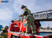 После учений на территории завода пожарная часть продемонстрировала тушение пеной с высоты. Мы пожалели, что не взяли купальники, чтобы сделать красивые кадры в пене.