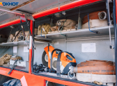 Пока мы расспрашивали «членов штаба» о подробностях работы МЧС, наше внимание привлекли различные предметы на их костюме. Здесь есть маска для дыхания, баллон с воздухом, специальный топор, каска… Сотрудники части с воодушевлением, перебивая друг друга, перечисляли предметы. Общий вес костюма составляет порядка 15 кг. Однако в штабе отметили, что у тех, кто тушит огонь, вес «обмундирования» еще больше.