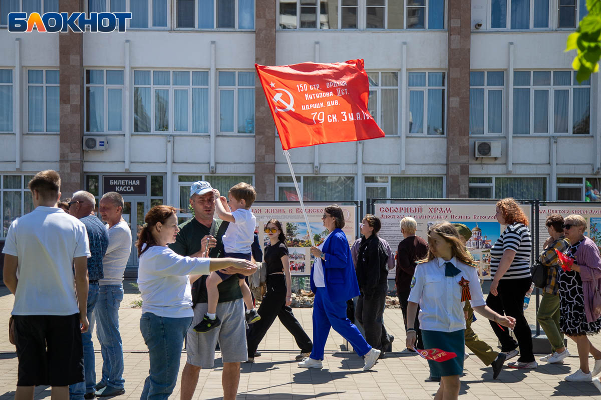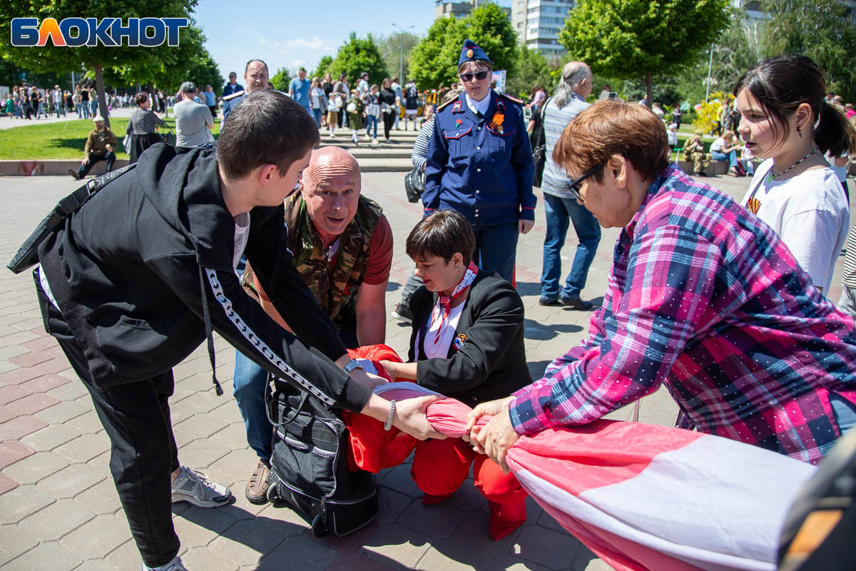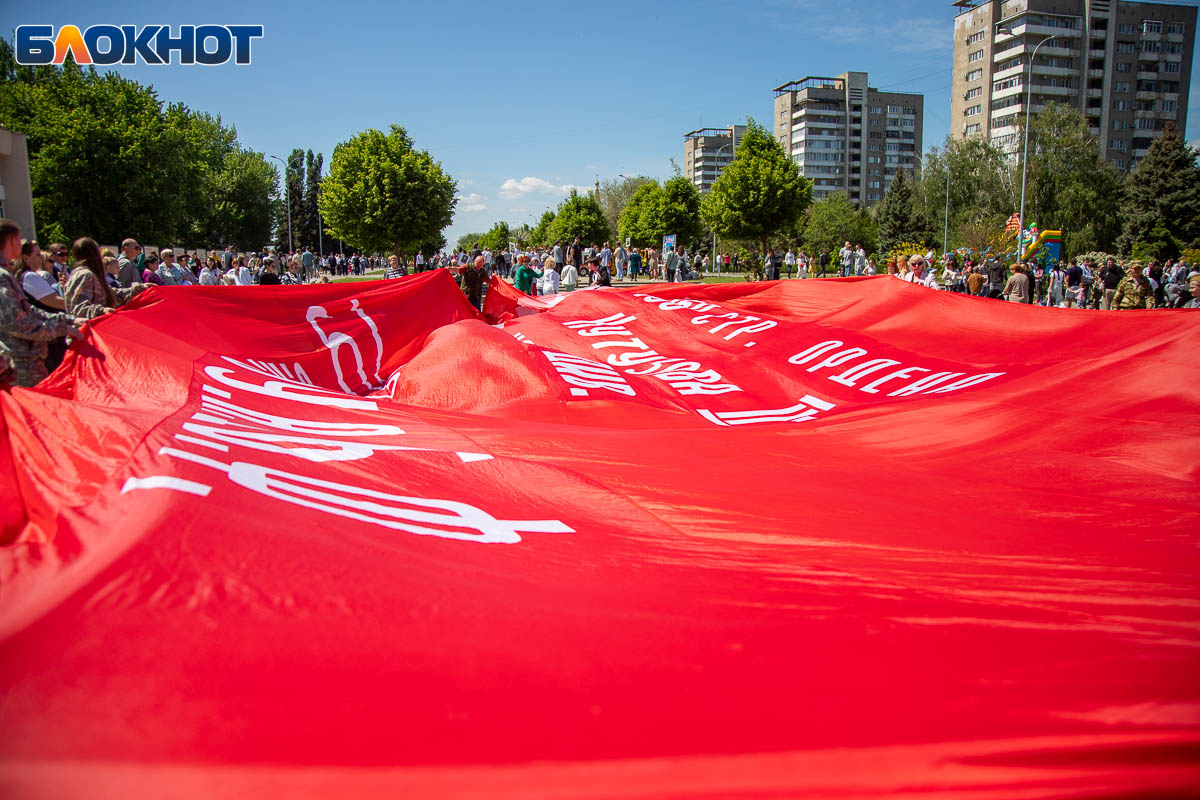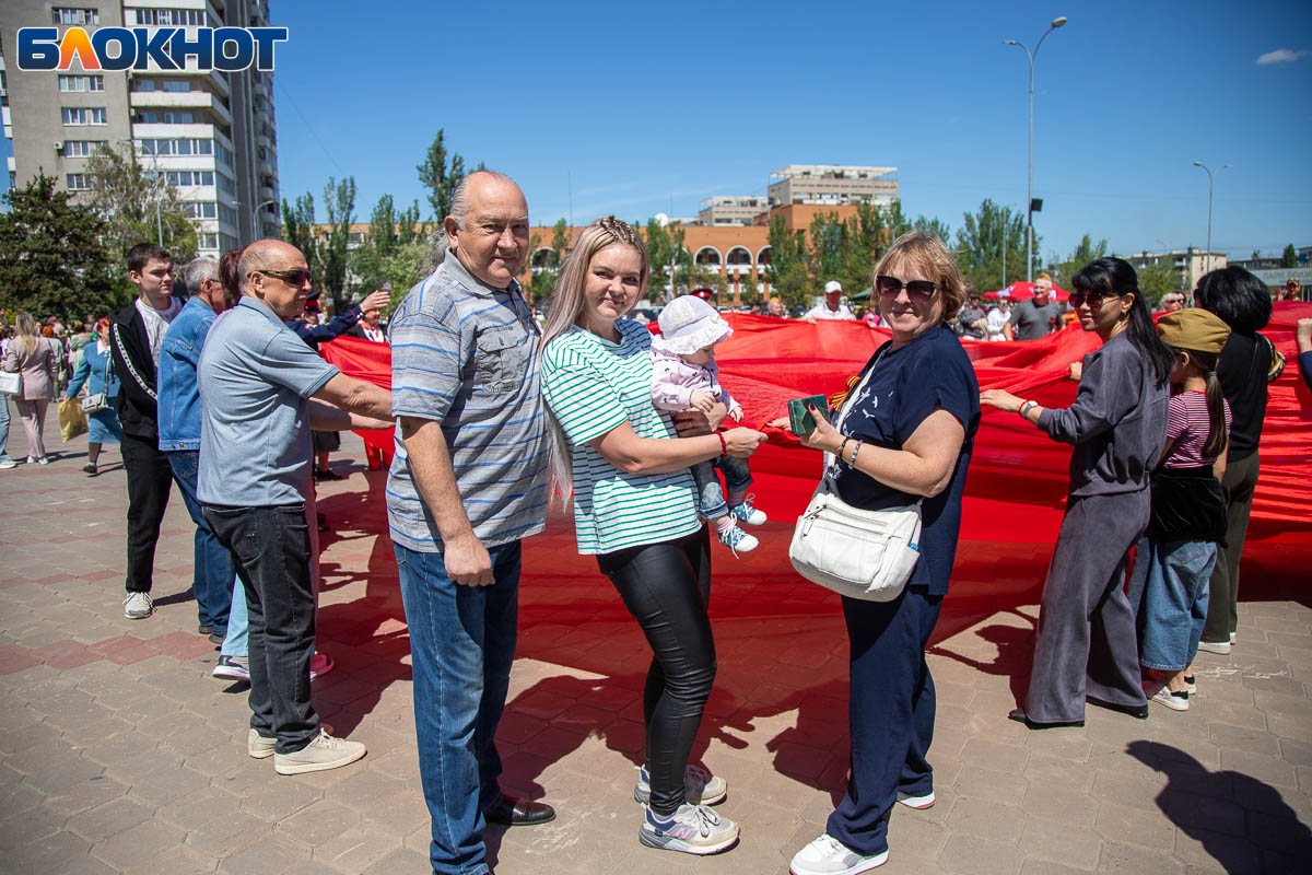 Центральным событием стало развёртывание копии Знамени Победы размером 10×20 метров. «Штурмовой флаг 150-й Идрицкой дивизии, водружённый над рейхстагом, стал символом победы советского народа», — напомнили организаторы. Волжане, объединившись вокруг знамени, почтили память героев.
