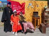 Школы №22, 19 и «серебряные» волонтёры воссоздали привал фронтовой концертной бригады;