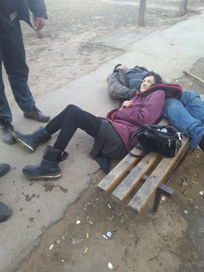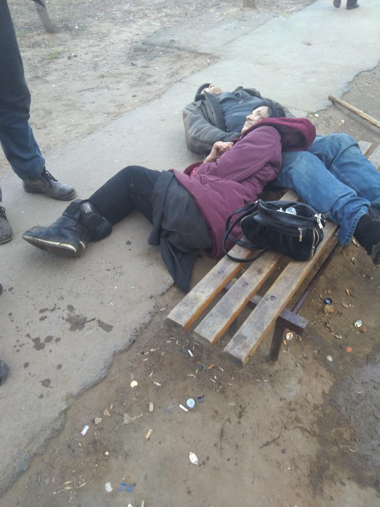 Остальные участники ежедневных лавочных застолий не смогли справиться с равновесием и предпочти лечь на асфальтированной дорожке, а вся эта картина находится в шаговой доступности с детской площадкой.