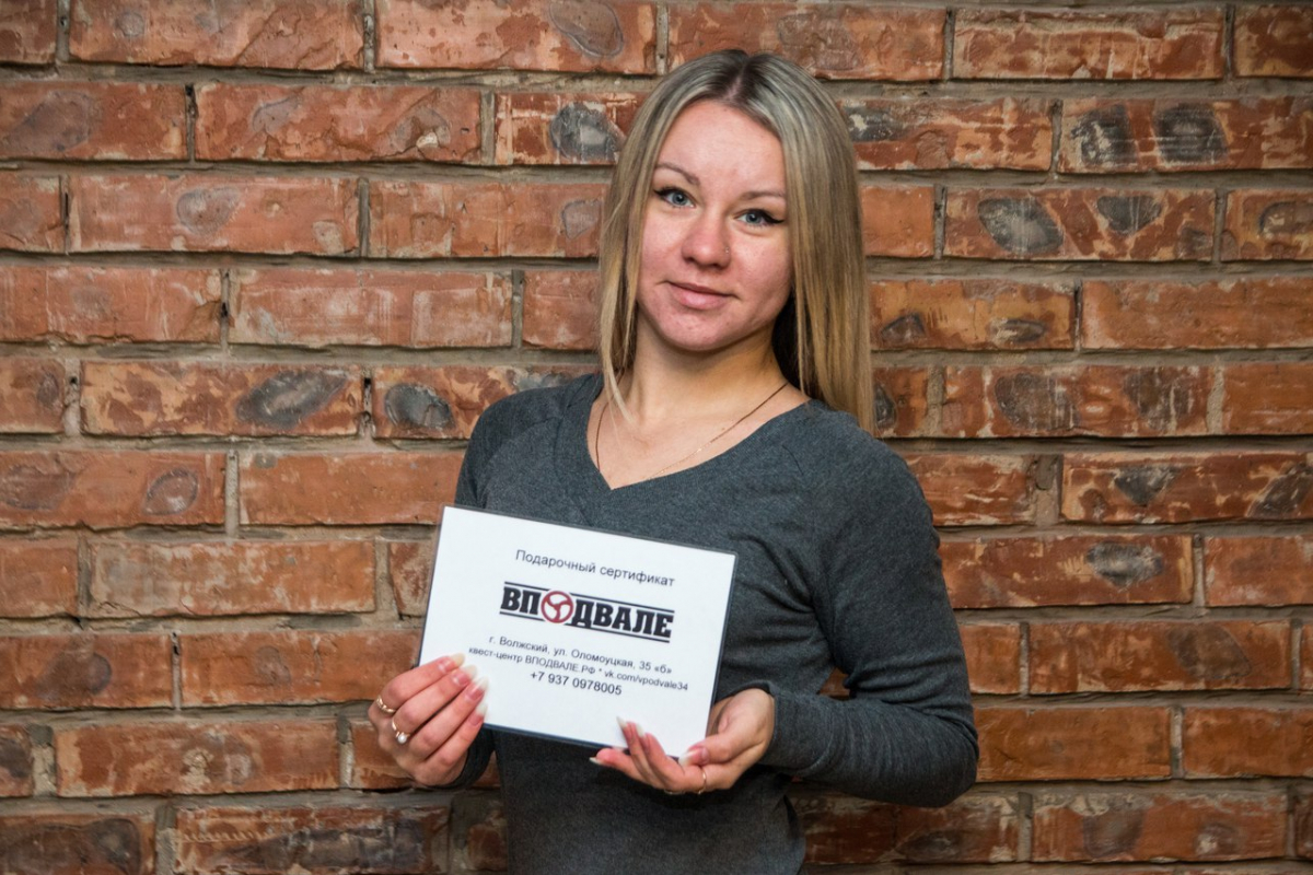 Анастасия Бердихина заняла второе место "Блокнота Волжского", приуроченного ко Дню всех святых. Девушка наконец забрала свой приз - сертификат на прохождение квеста "Вподвале".