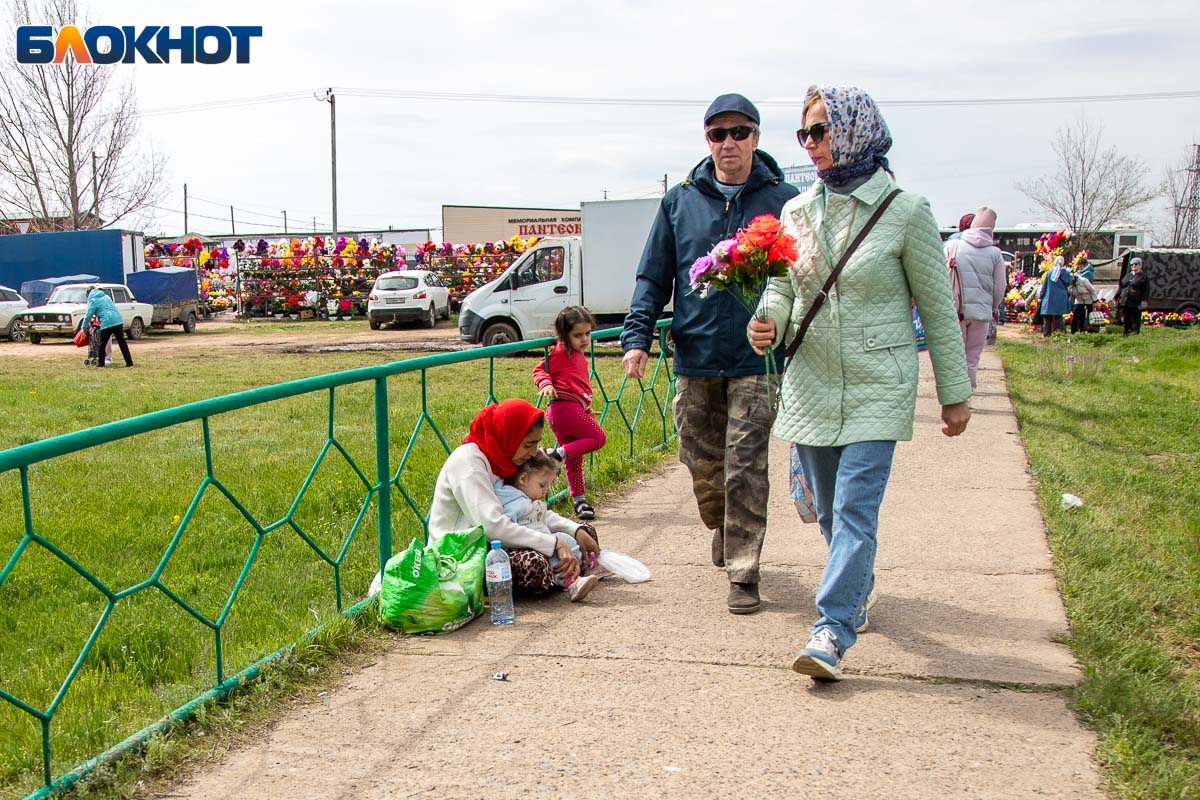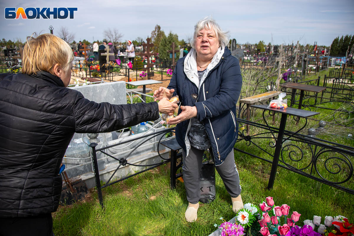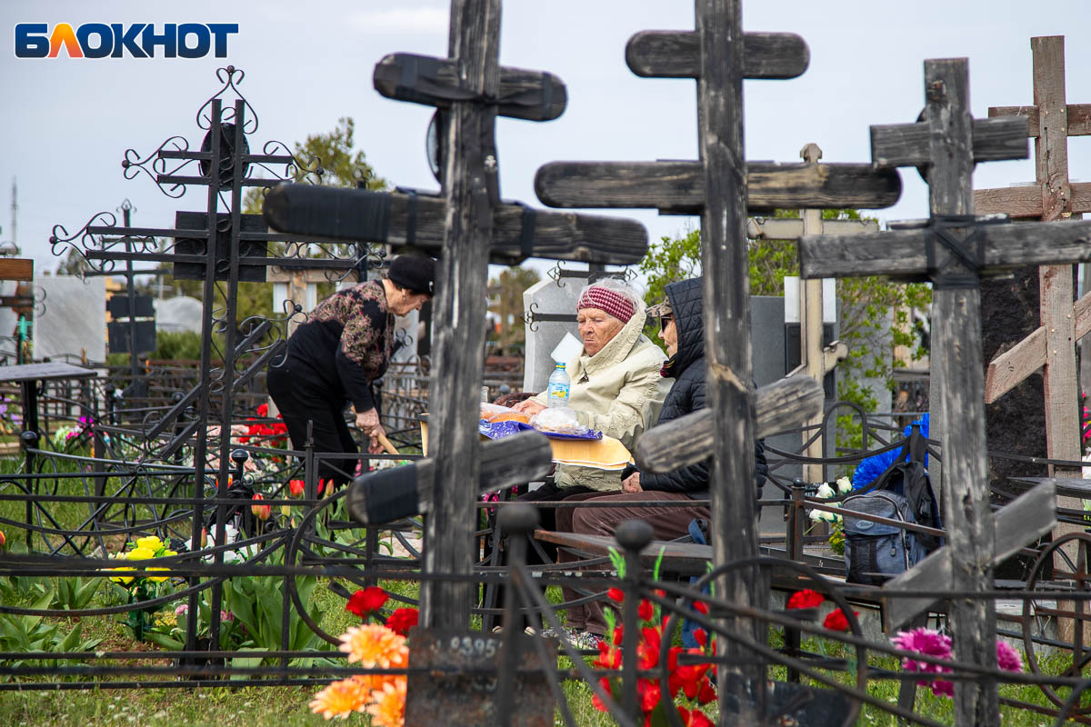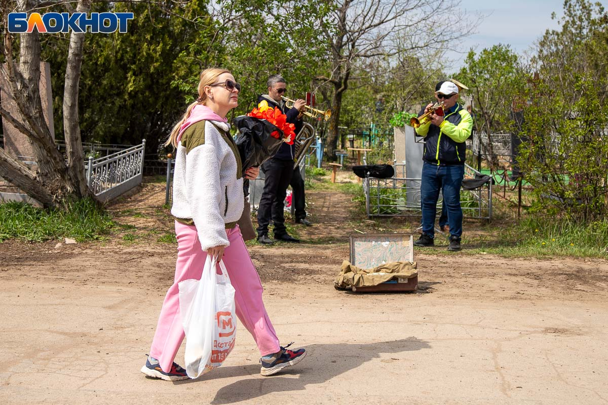 Рядом — привычная для таких дней жизнь: продаются искусственные цветы, звучит духовой оркестр, кто-то общается, кто-то угощает близких, соблюдая давние традиции. Несмотря на большое количество людей, в целом сохраняется порядок: мусор складывают аккуратно, основные работы по подготовке, судя по всему, провели заранее — песок уже распределён по могилам, территория выглядит ухоженной.