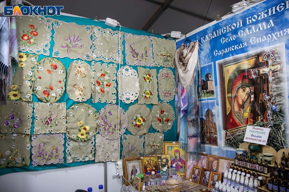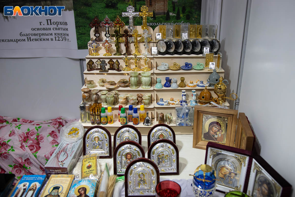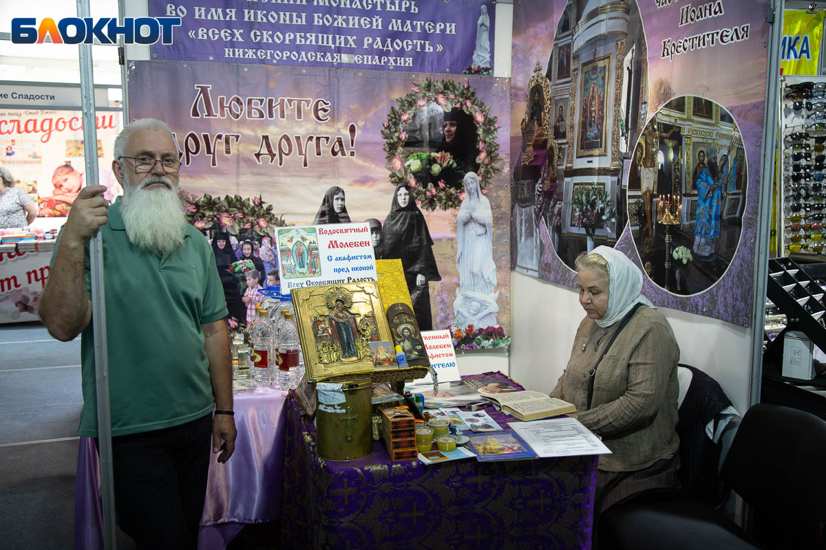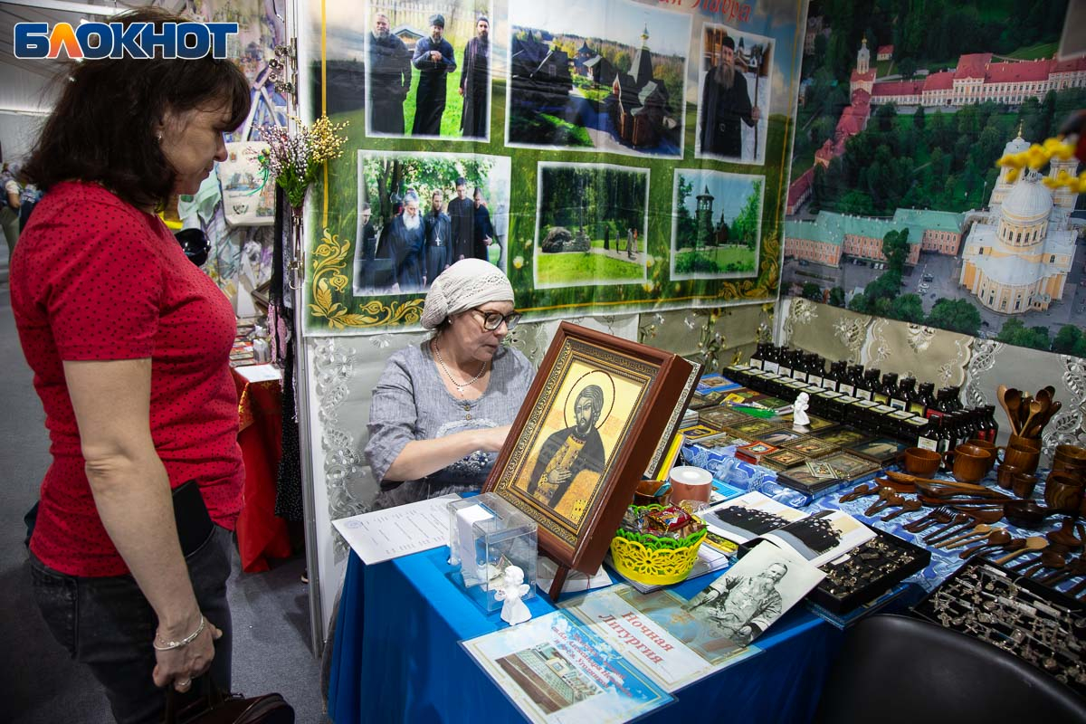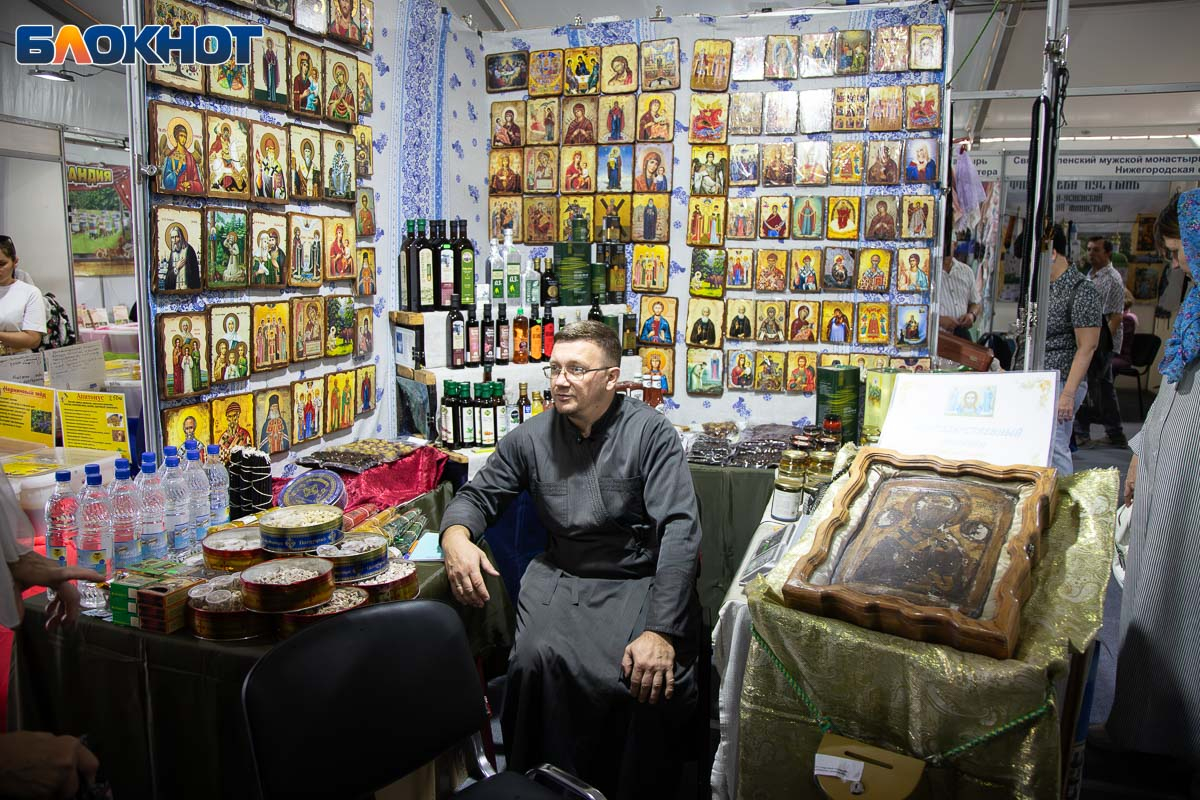 На площади перед ЦКиИ «Октябрь» развернулась обширная выставка-ярмарка. Подворья храмов и монастырей России и ближнего зарубежья представили свою продукцию: церковная утварь, православная литература, иконы, ювелирные изделия с религиозной символикой и даже продукты питания – все это можно было увидеть на фестивале.