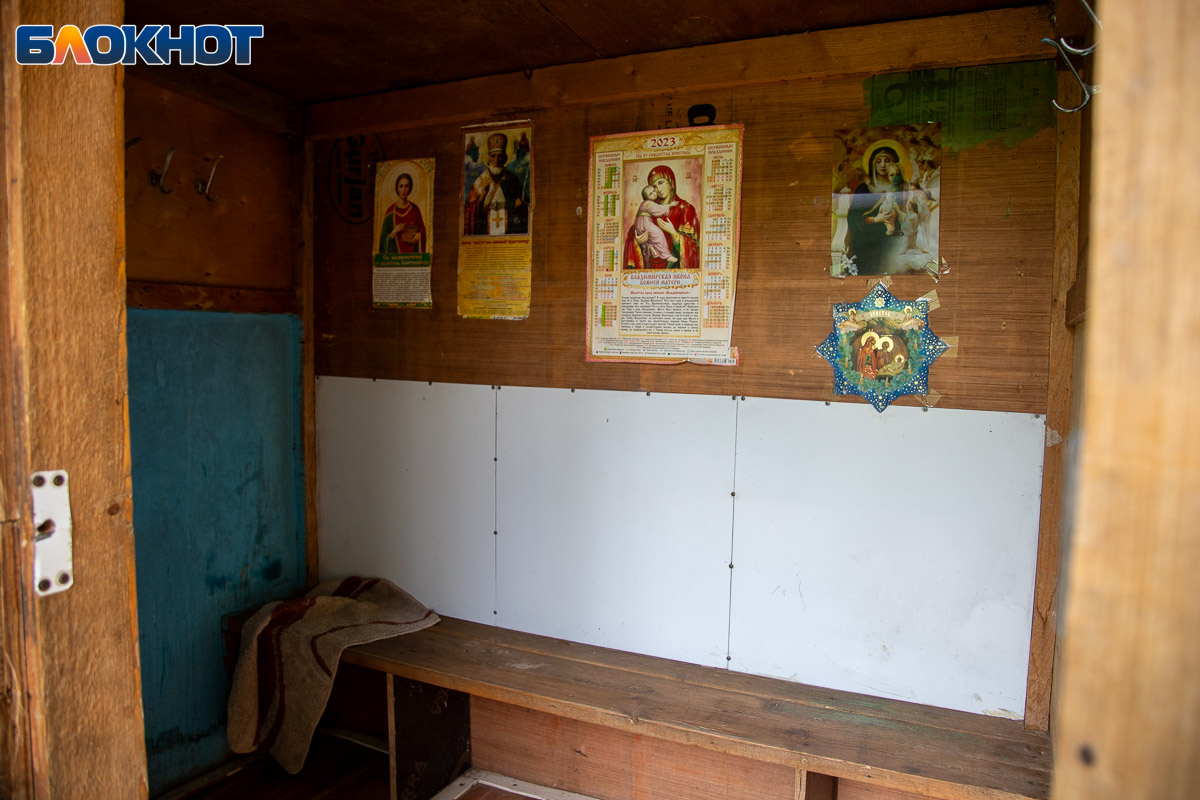 За постаментом Николая Чудотворца корреспондент обнаружил небольшой родник, но воды в нём не было. Тем не менее сама купель оказалась на месте. Более того, навстречу корреспонденту вышел мужчина в плавках, который, судя по всему, только что окунулся в купель.