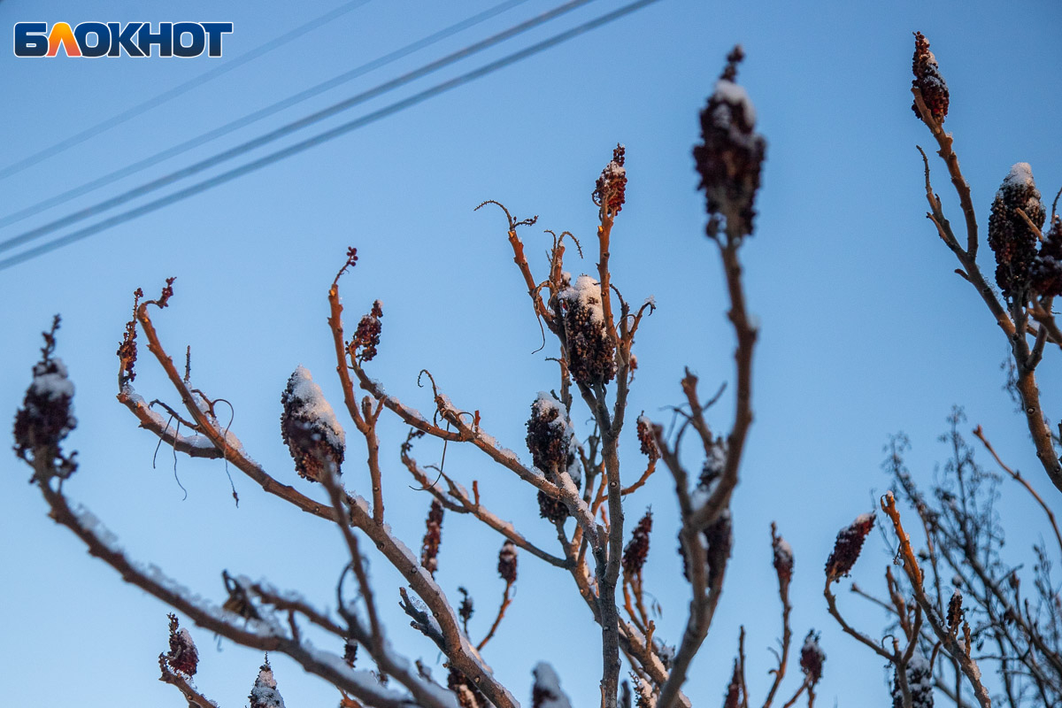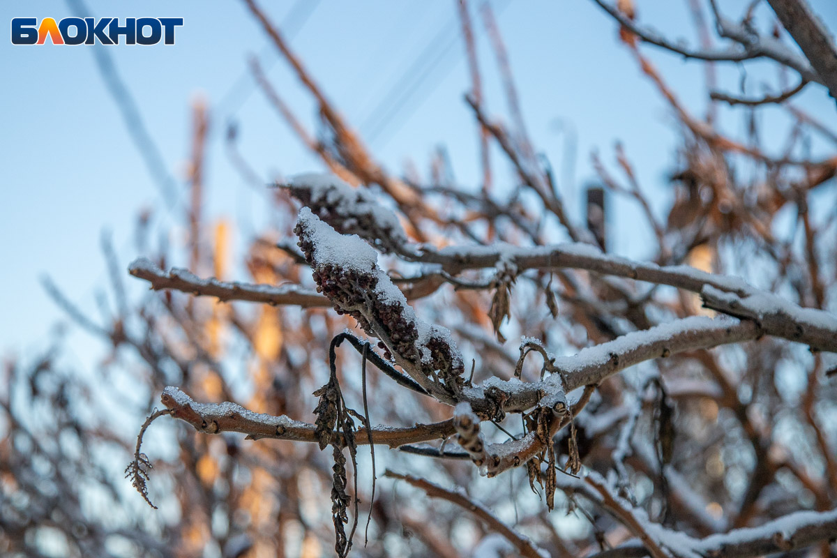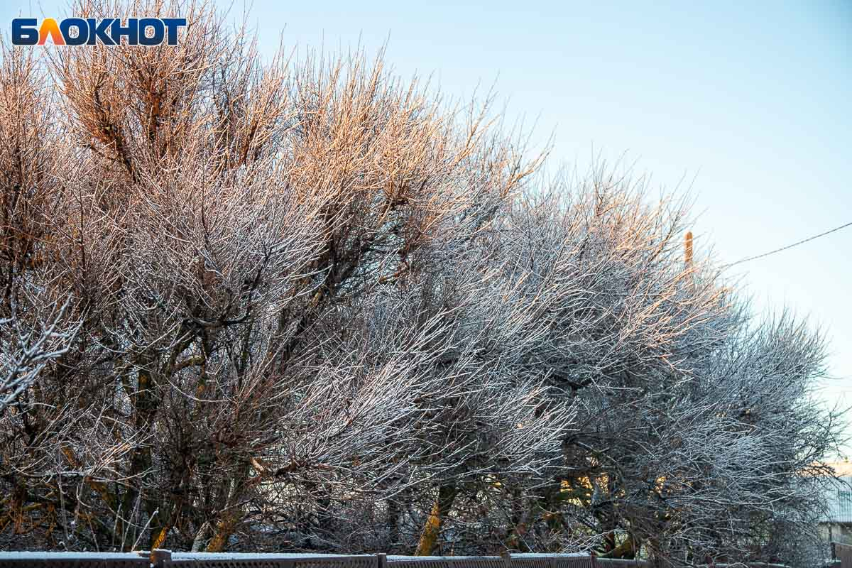 Волжский 10 января проснулся в по-настоящему зимнем настроении. Ночью город накрыл снег, а утренний мороз украсил деревья и улицы тонким слоем инея.