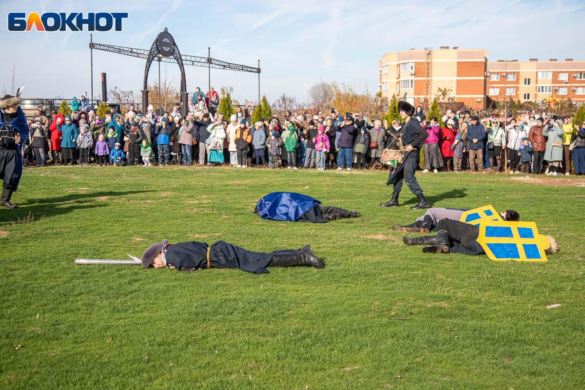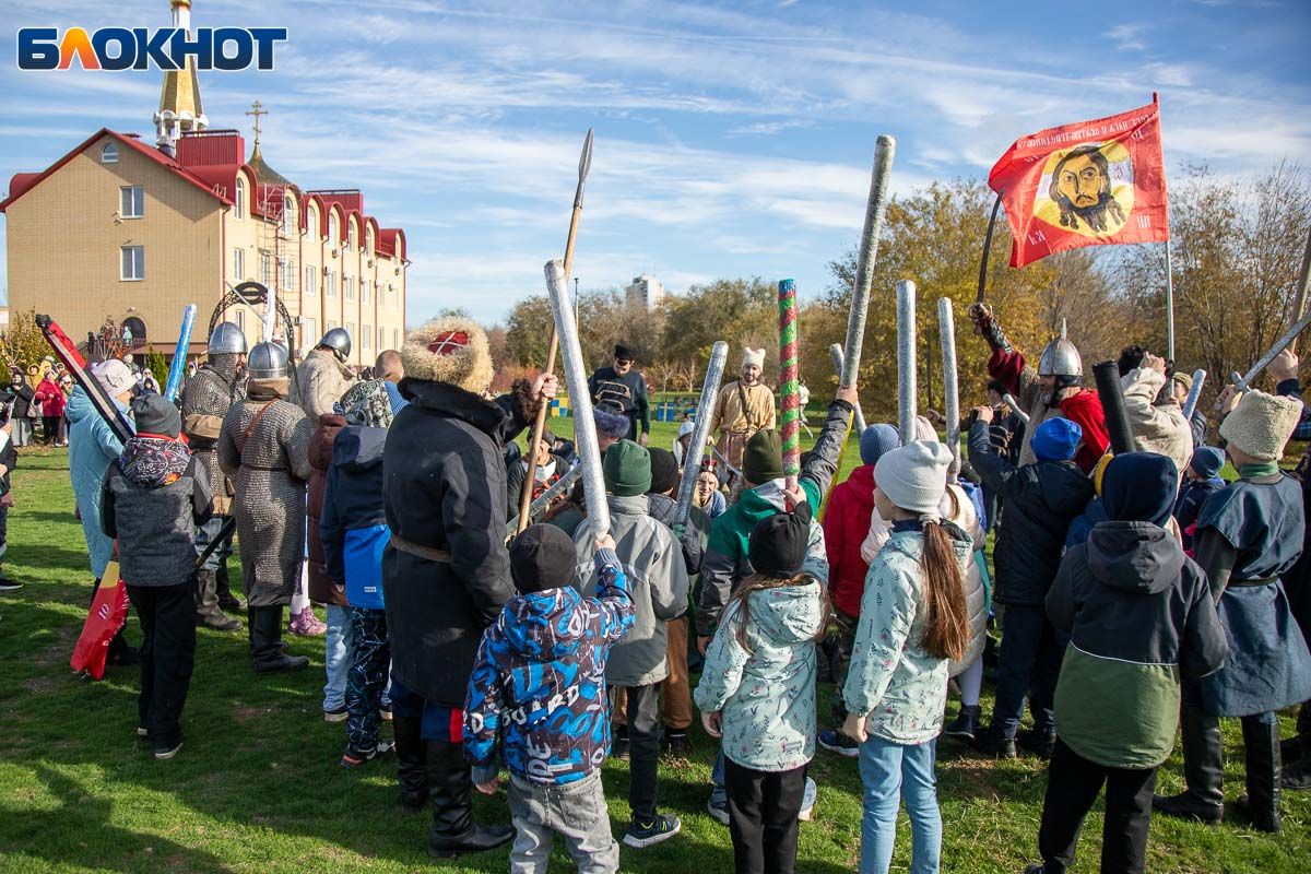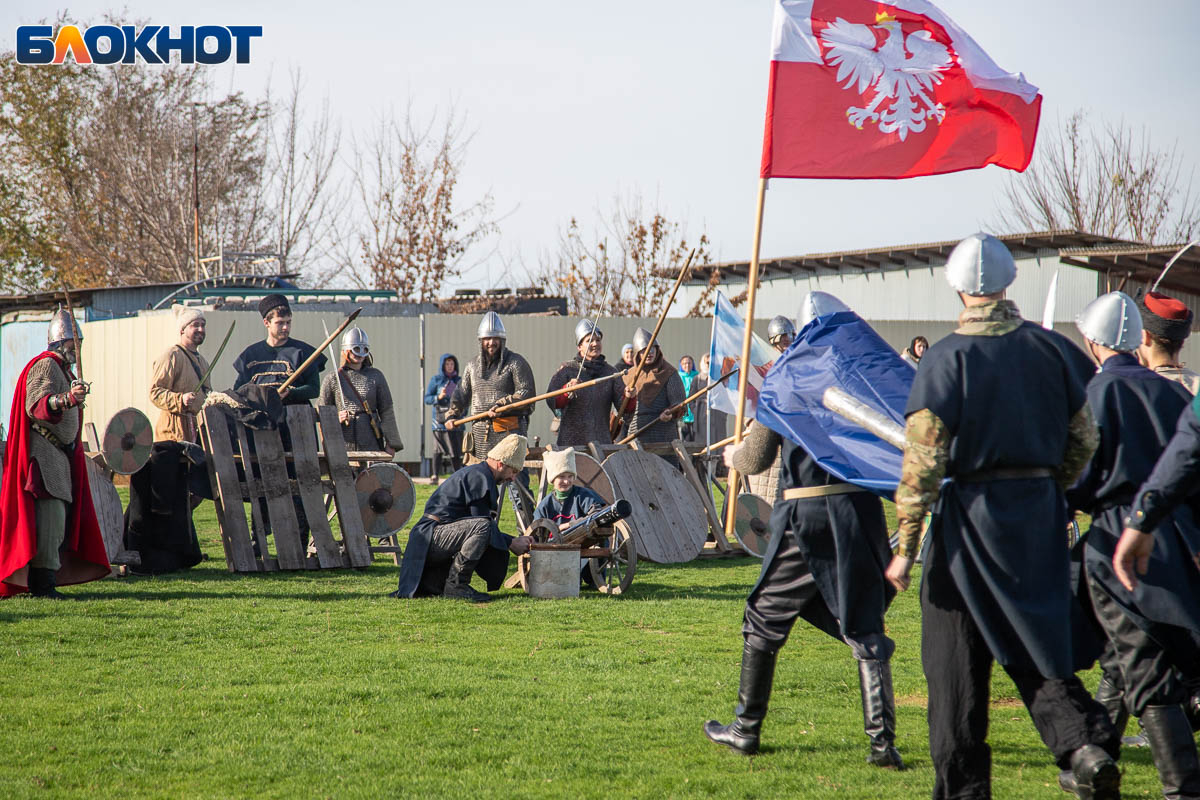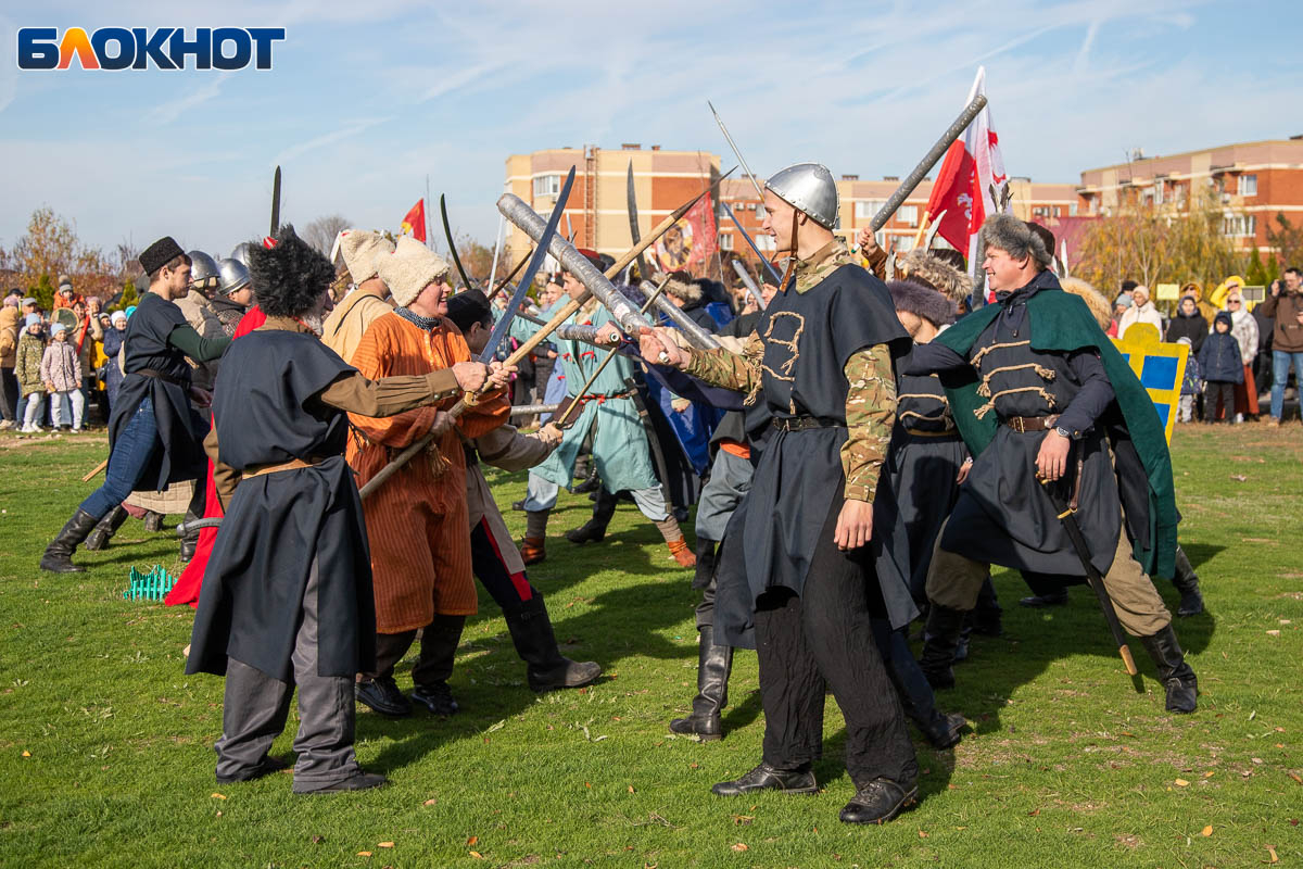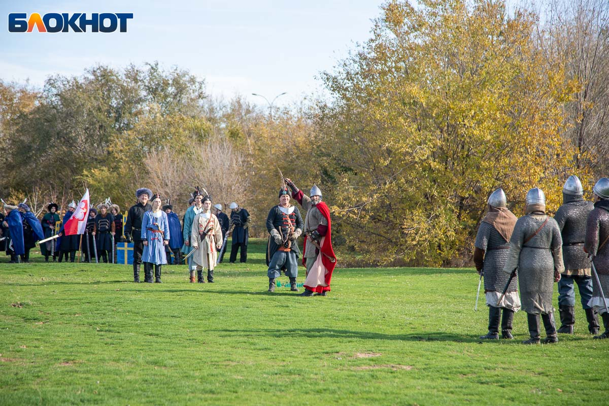 В День народного единства у собора Иоанна Богослова в Волжском состоялась масштабная историческая реконструкция, напомнившая горожанам о событиях, в честь которых установлен праздник. На глазах у сотен зрителей энтузиасты воссоздали один из ключевых эпизодов 1612 года — битву народного ополчения под предводительством Дмитрия Пожарского и Кузьмы Минина с войском Речи Посполитой. Фотокорреспондент «Блокнот Волжский» Александр Агафонов запечатлел все ключевые моменты этого наглядного и яркого урок истории, который надолго останется в памяти и взрослых, и детей.