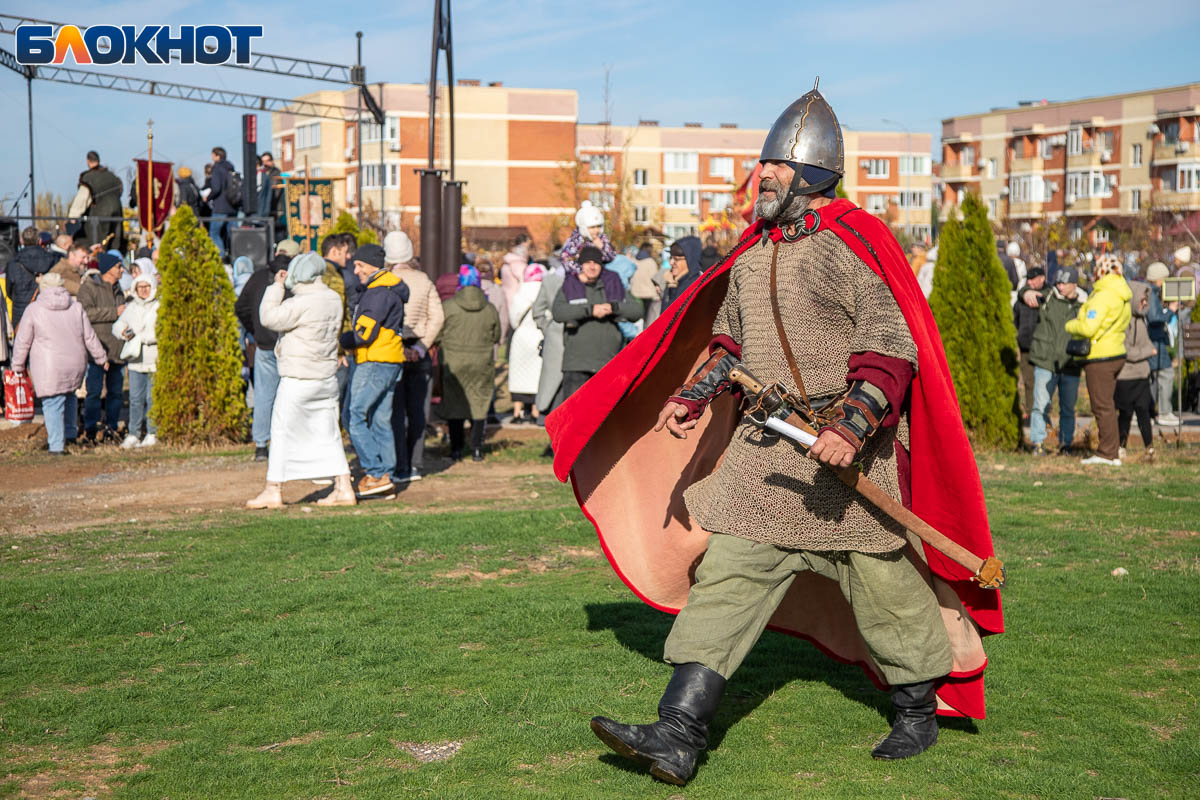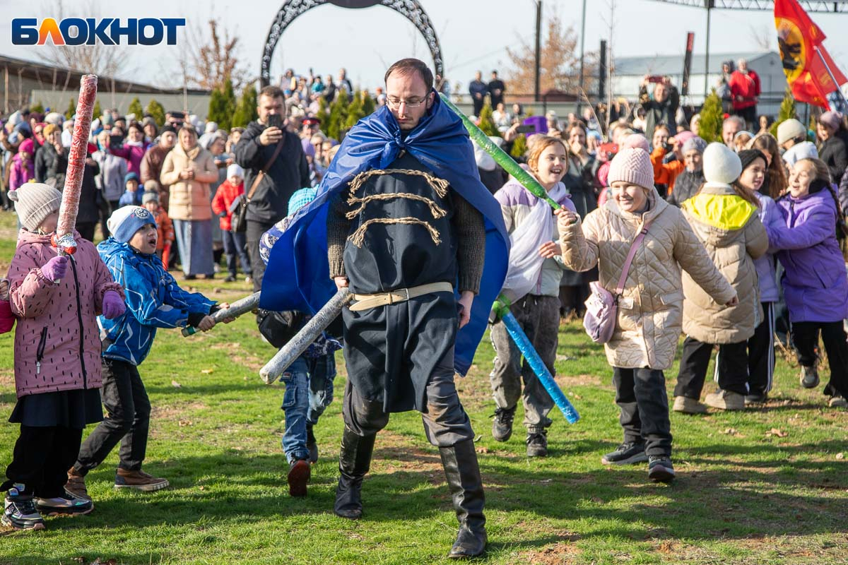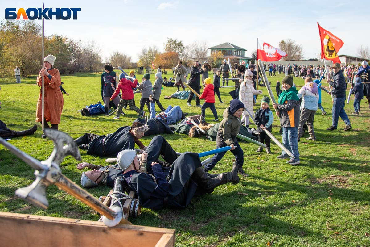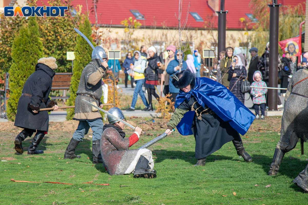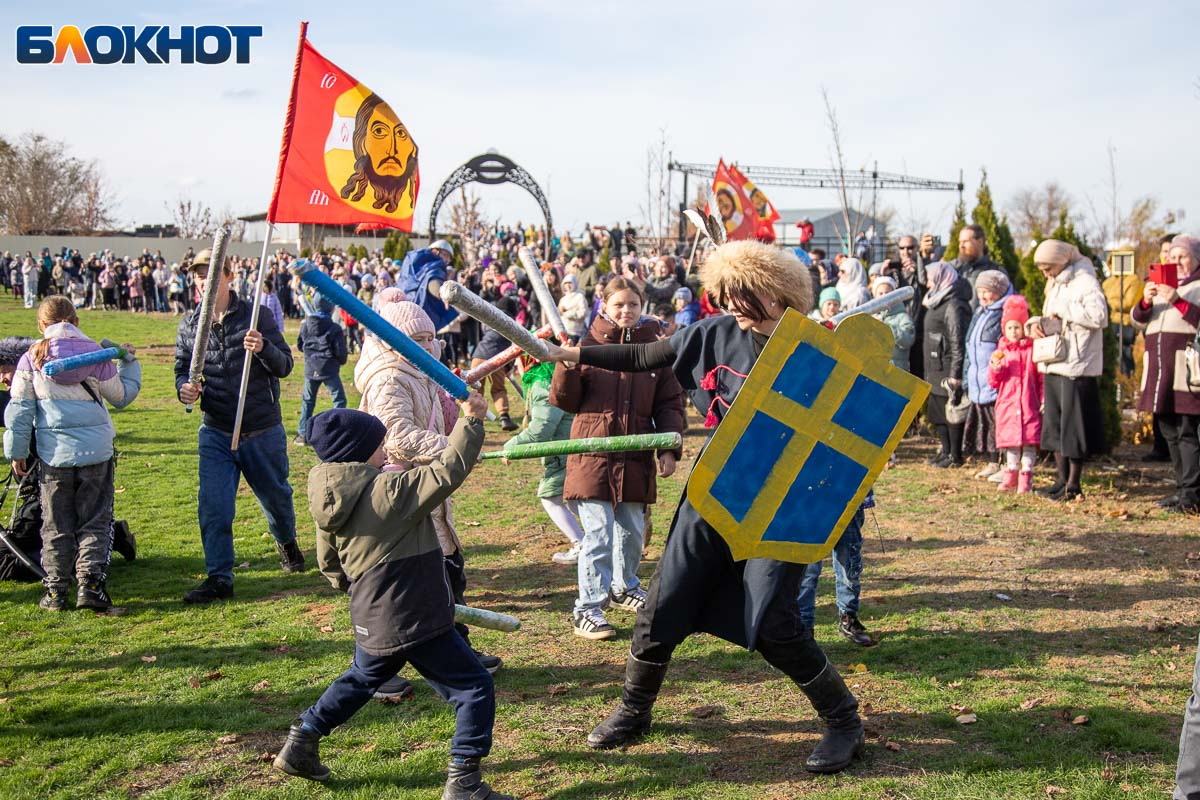 В День народного единства у собора Иоанна Богослова в Волжском состоялась масштабная историческая реконструкция, напомнившая горожанам о событиях, в честь которых установлен праздник. На глазах у сотен зрителей энтузиасты воссоздали один из ключевых эпизодов 1612 года — битву народного ополчения под предводительством Дмитрия Пожарского и Кузьмы Минина с войском Речи Посполитой. Фотокорреспондент «Блокнот Волжский» Александр Агафонов запечатлел все ключевые моменты этого наглядного и яркого урок истории, который надолго останется в памяти и взрослых, и детей.