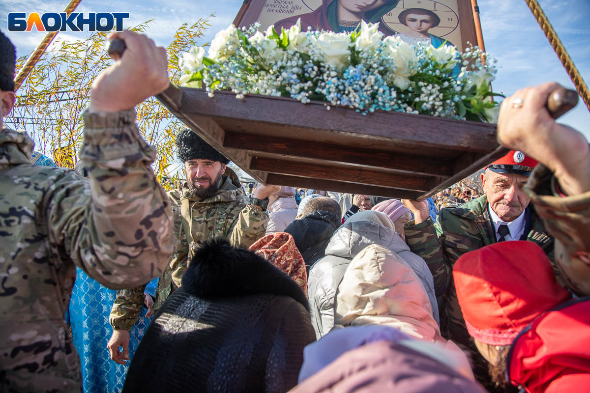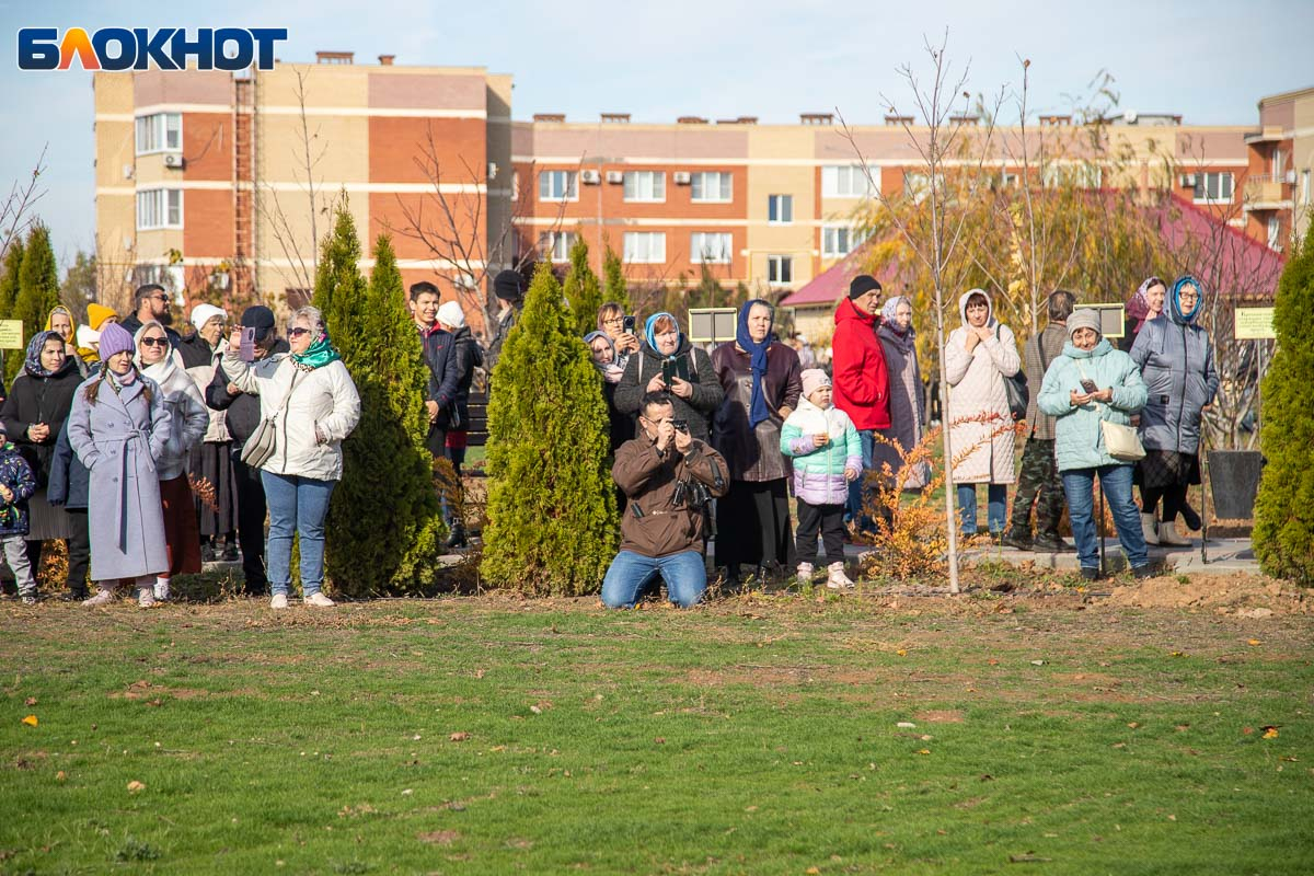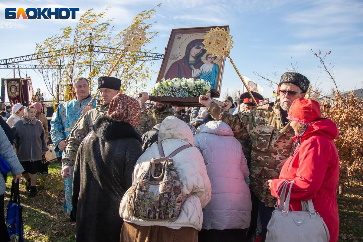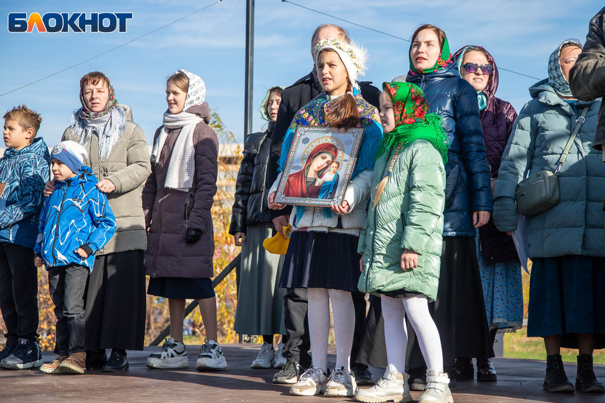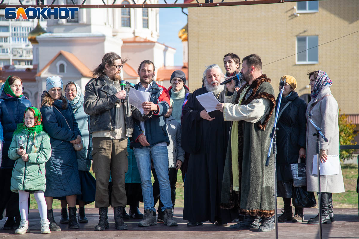 Праздничный день начался с крестного хода, объединившего несколько тысяч верующих волжан. Маршрут прошел по главным улицам Волжского и завершился у Соборного храма Иоанна Богослова, где состоялся торжественный молебен, после которых действие перенеслось на поле за храмом. Пока епископ обращался к собравшимся, реконструкторы готовились к выступлению. Поле боя было точно организовано: польские гусары заняли позиции в лесочке, а русские ополченцы укрепились за редутом с пушками.