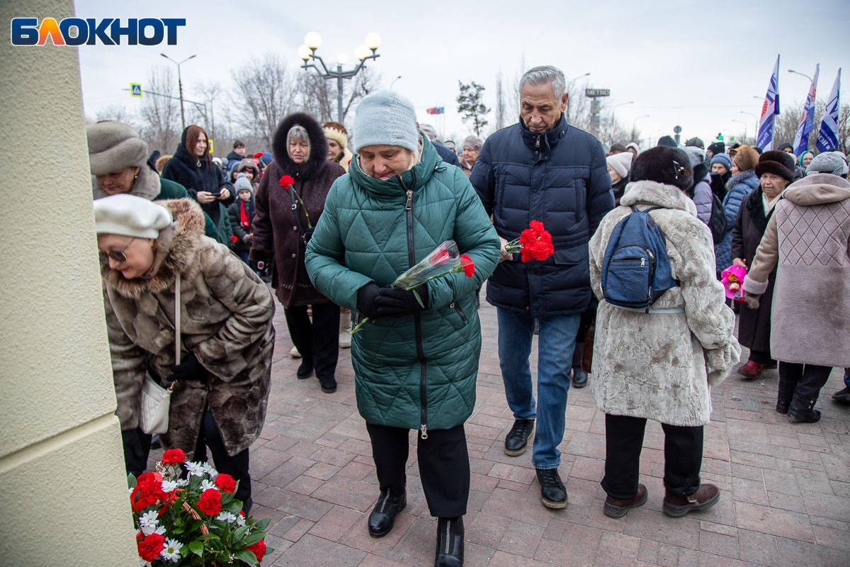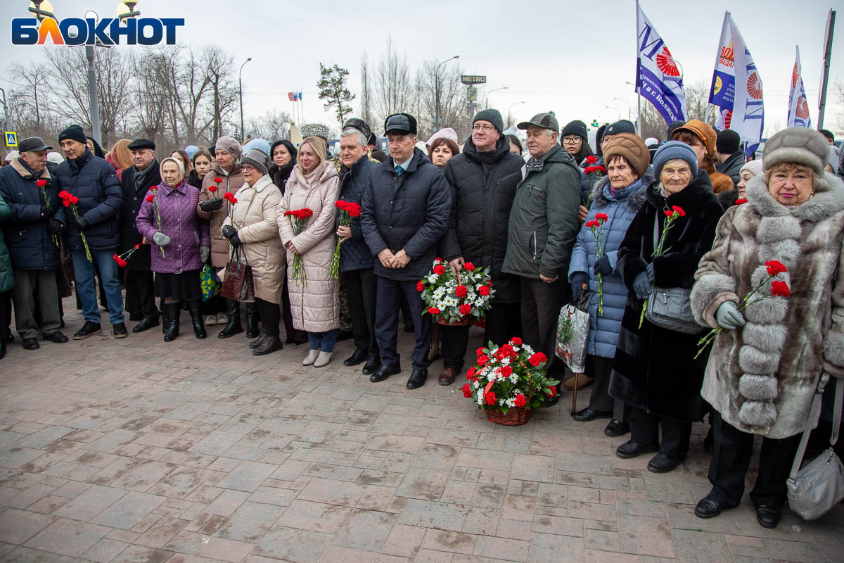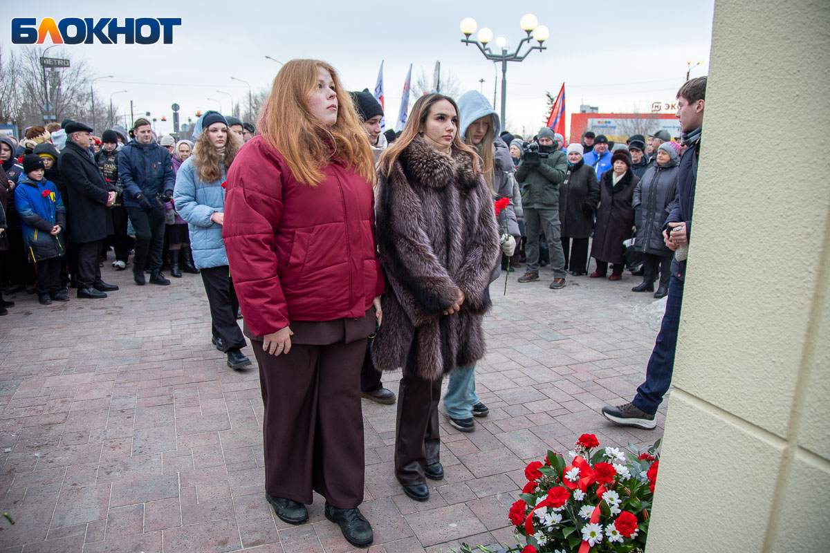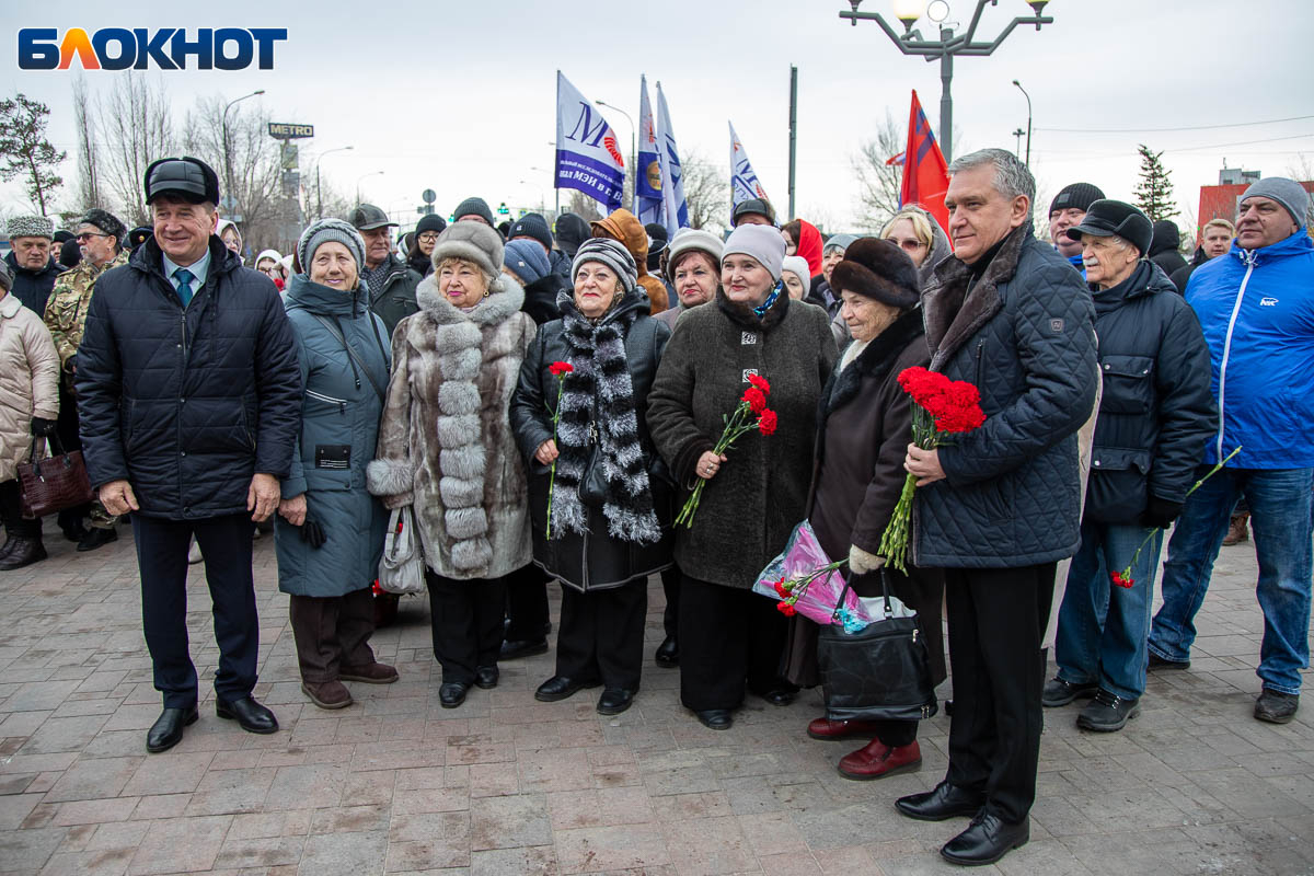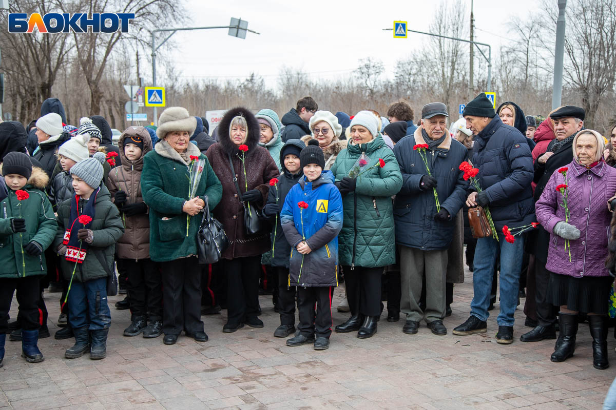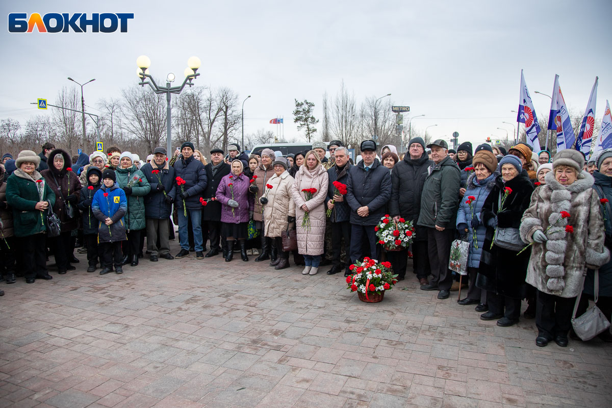 С самого утра площадь у памятника, который с 1986 года встречает гостей на въезде со стороны Волгограда, заполнилась людьми. В траурной церемонии приняли участие все, для кого история города не пустой звук: убеленные сединами первостроители и члены Совета ветеранов, руководство города во главе с чиновниками администрации, депутаты, а также совсем юные волжане — школьники и студенты.