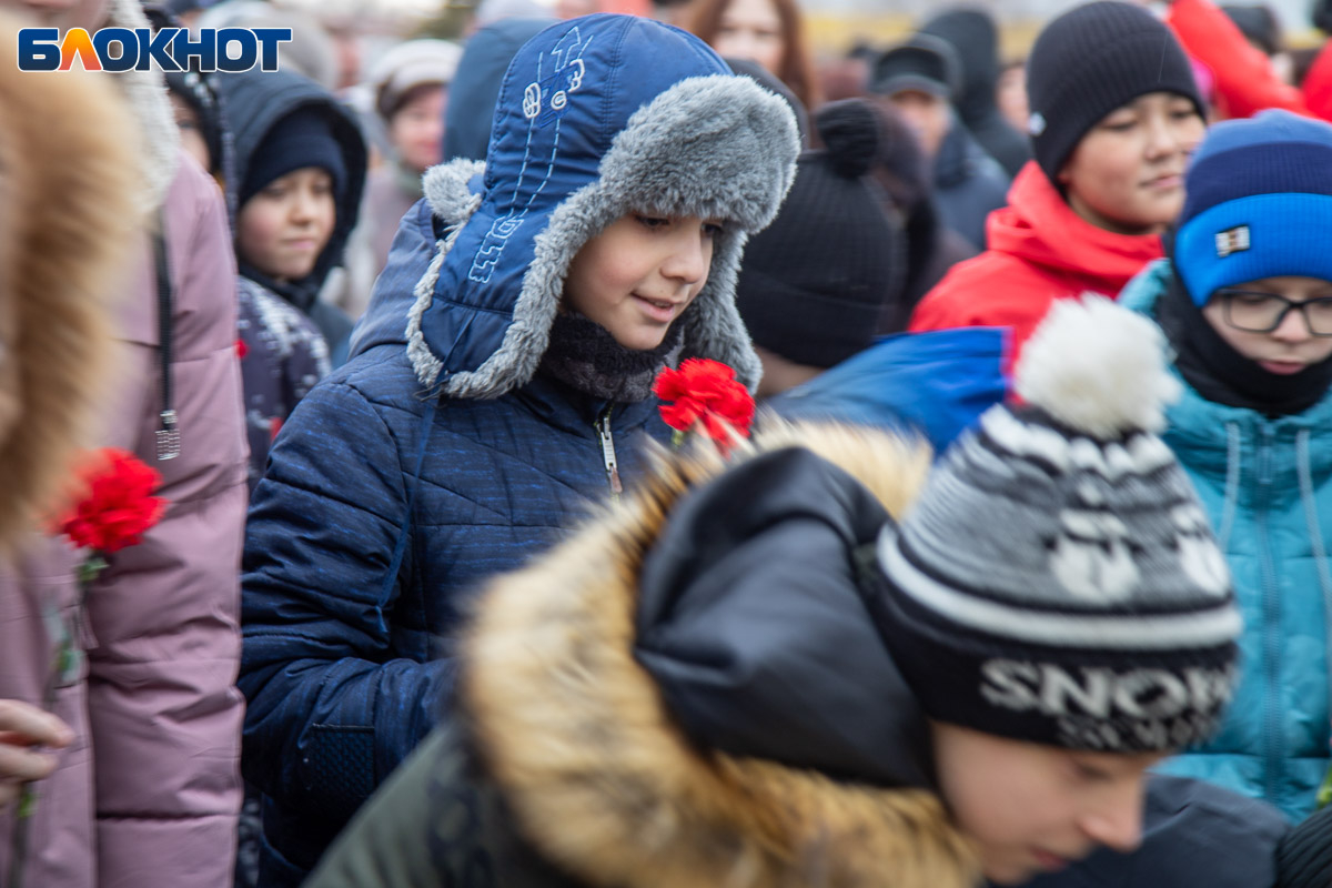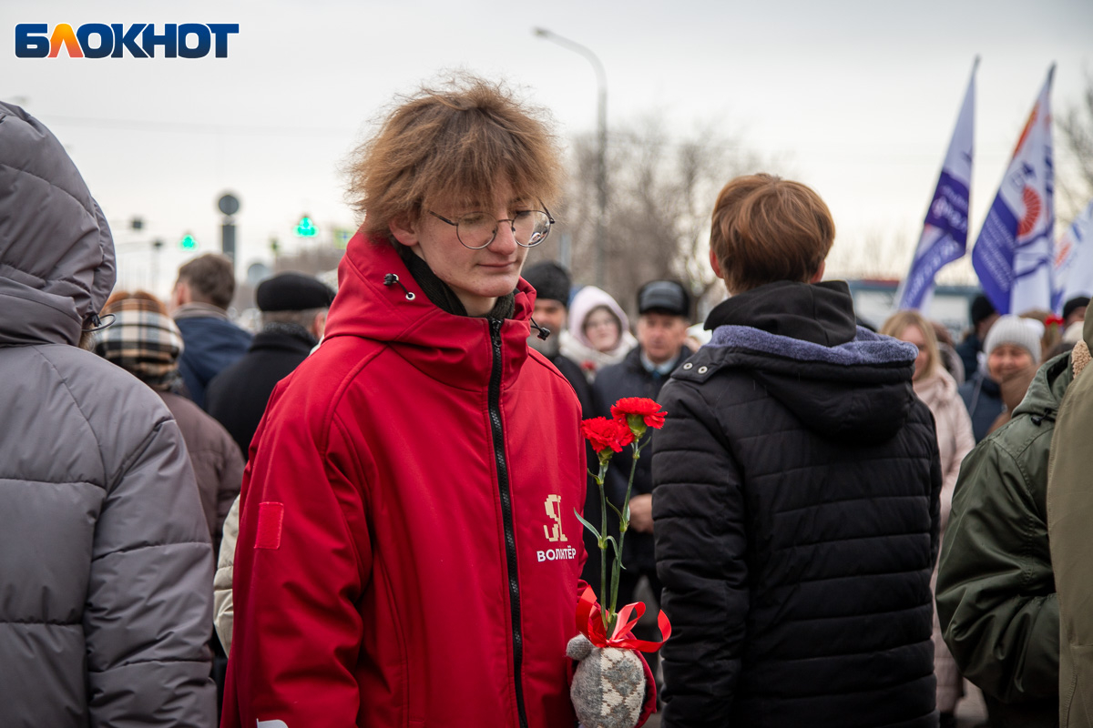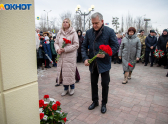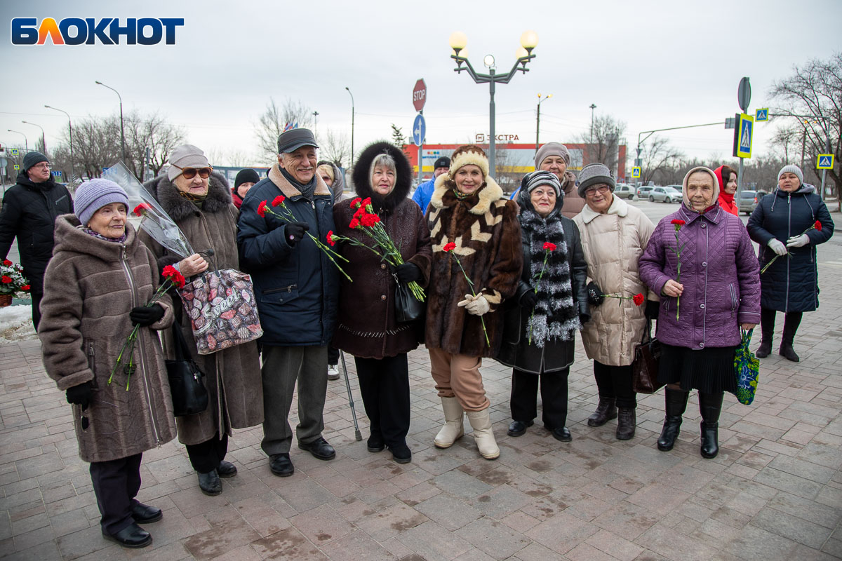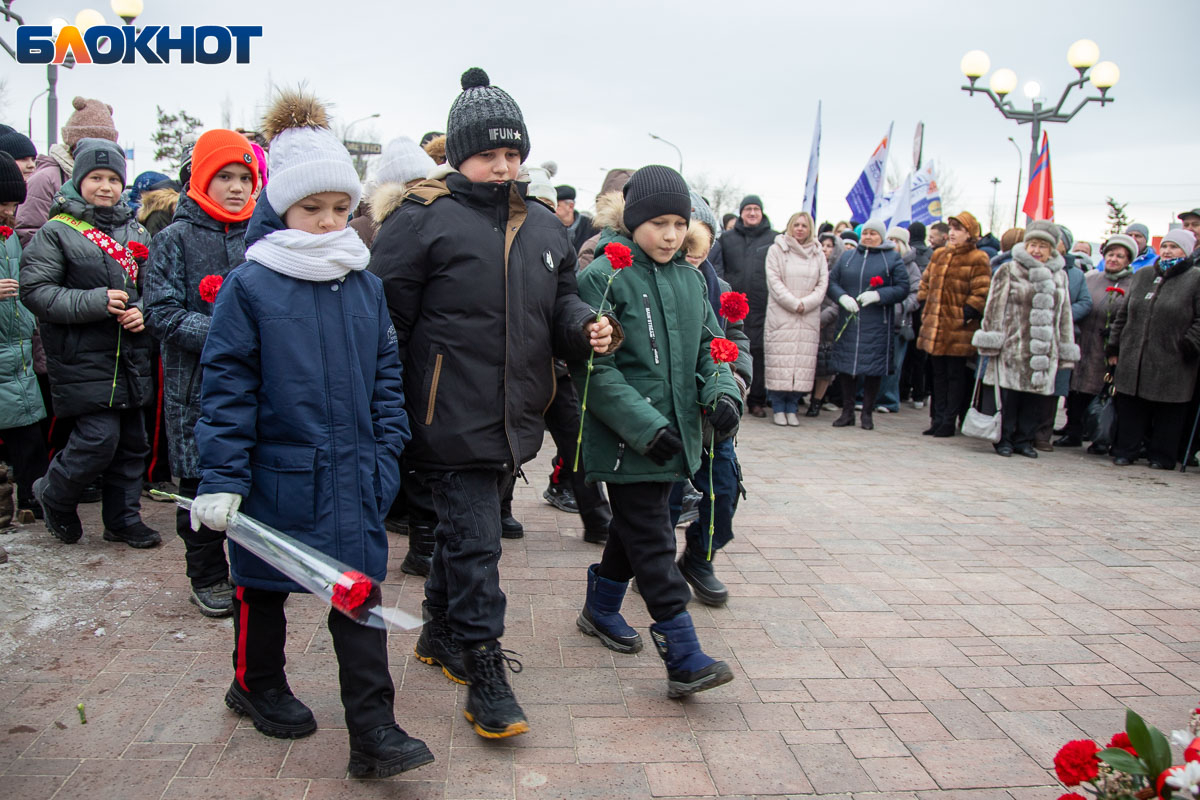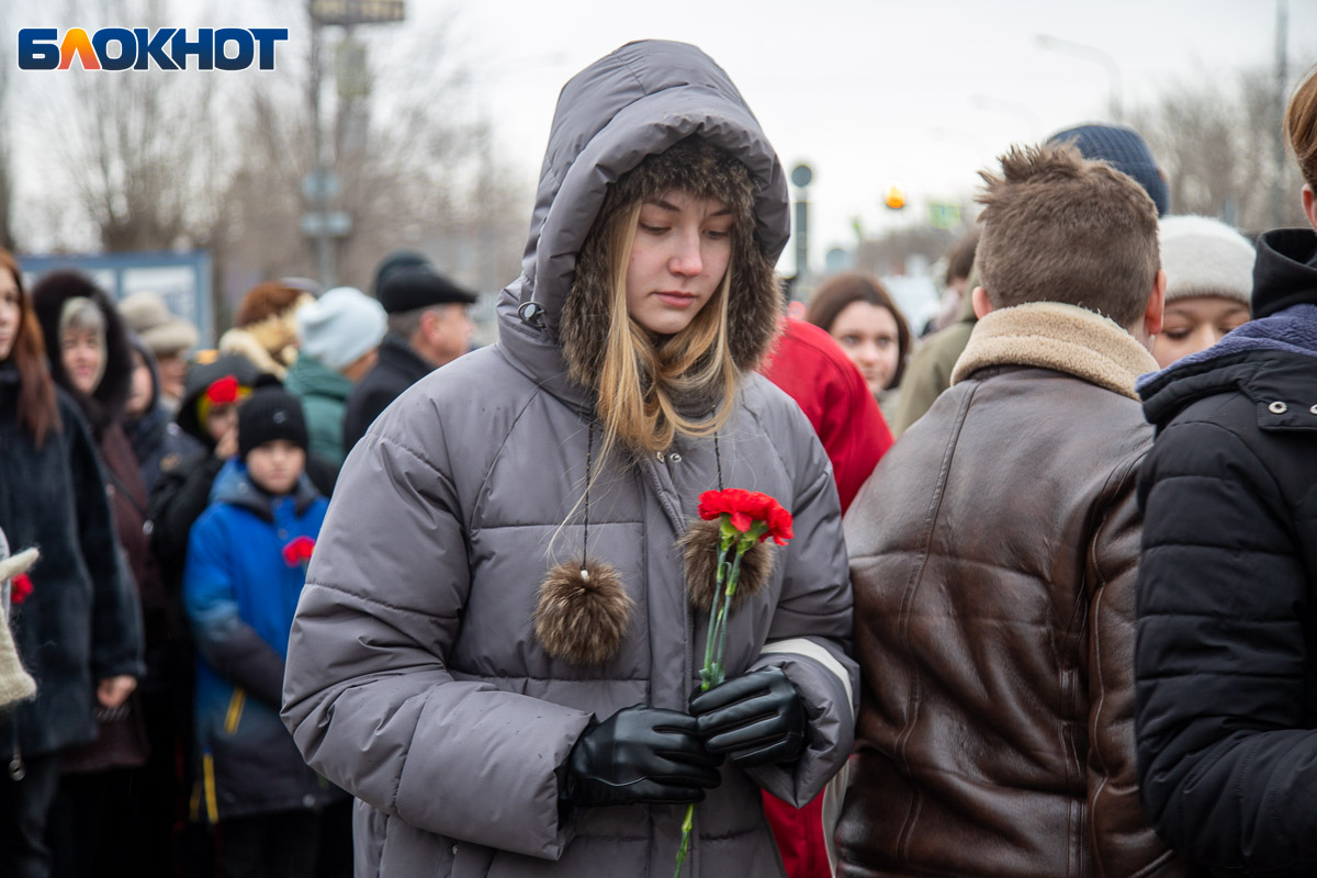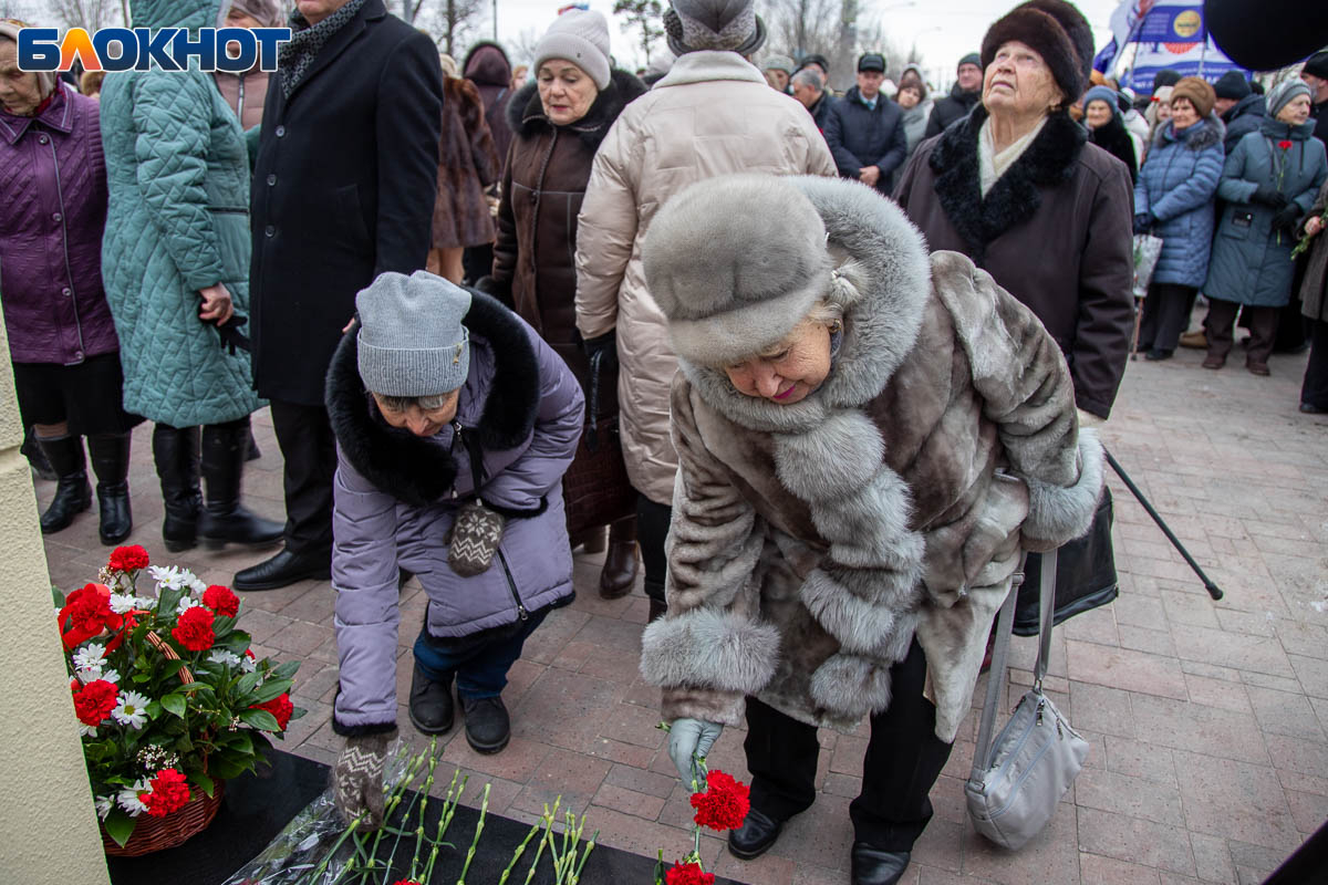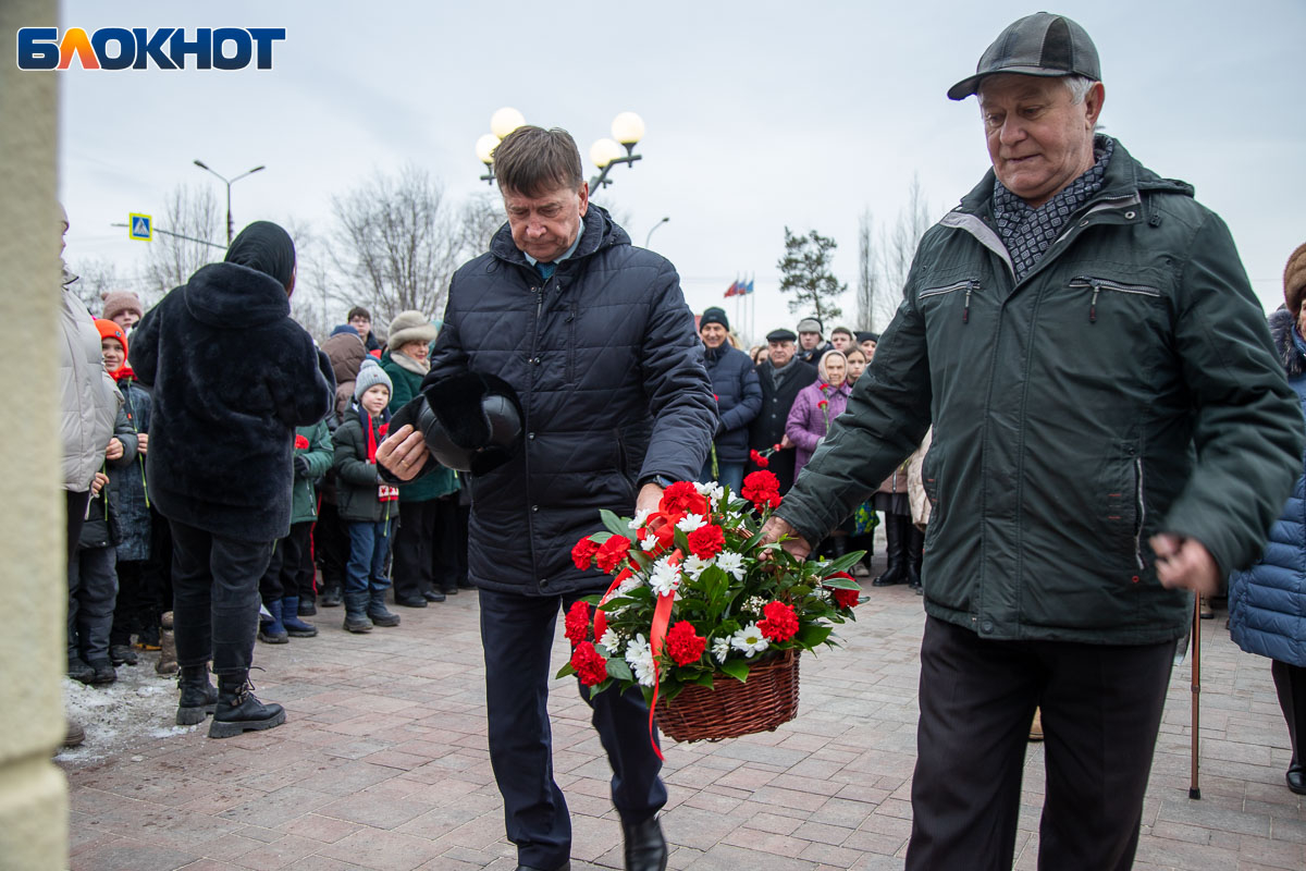 С самого утра площадь у памятника, который с 1986 года встречает гостей на въезде со стороны Волгограда, заполнилась людьми. В траурной церемонии приняли участие все, для кого история города не пустой звук: убеленные сединами первостроители и члены Совета ветеранов, руководство города во главе с чиновниками администрации, депутаты, а также совсем юные волжане — школьники и студенты.