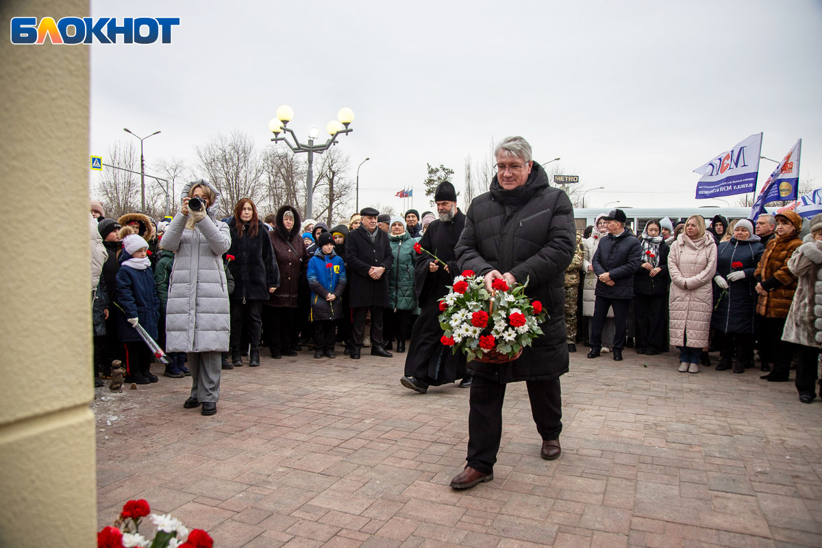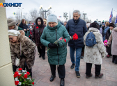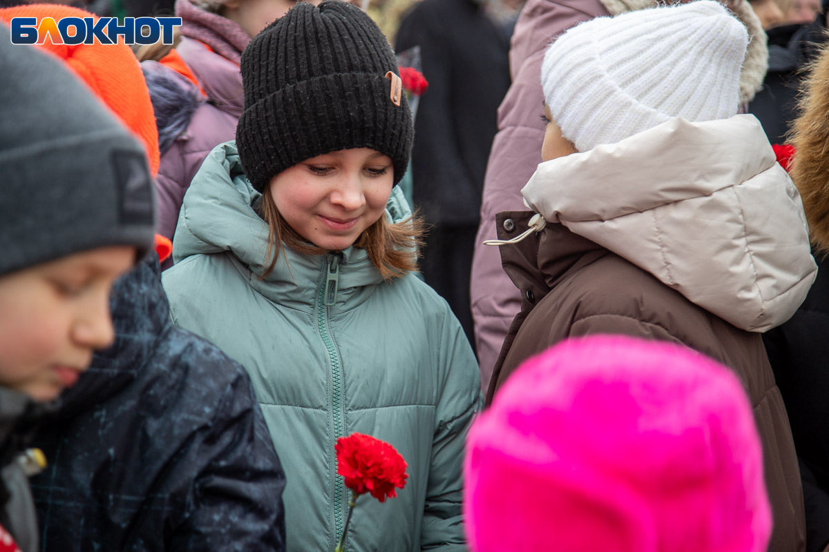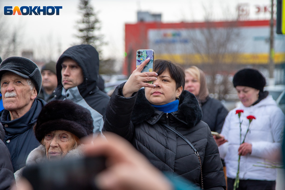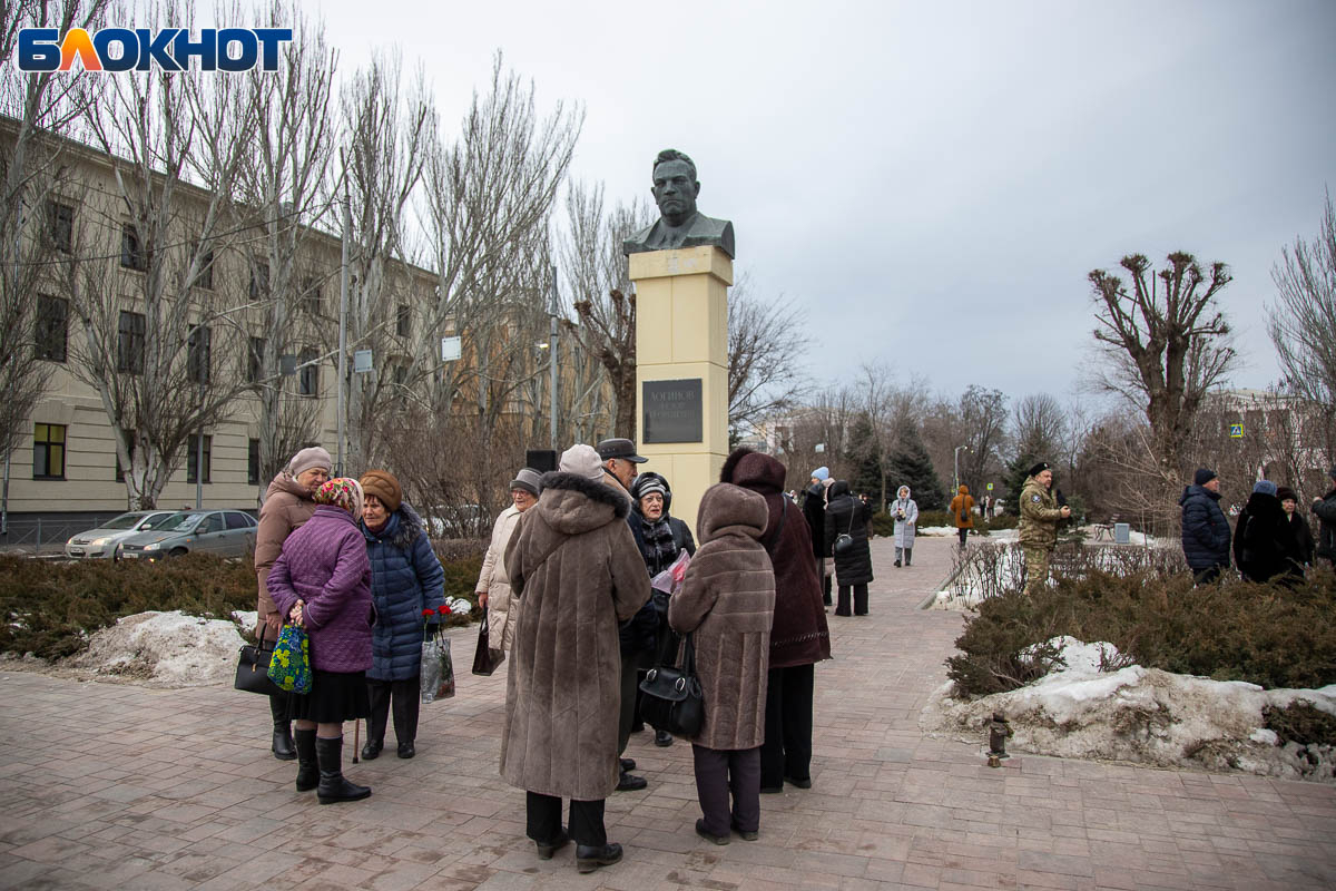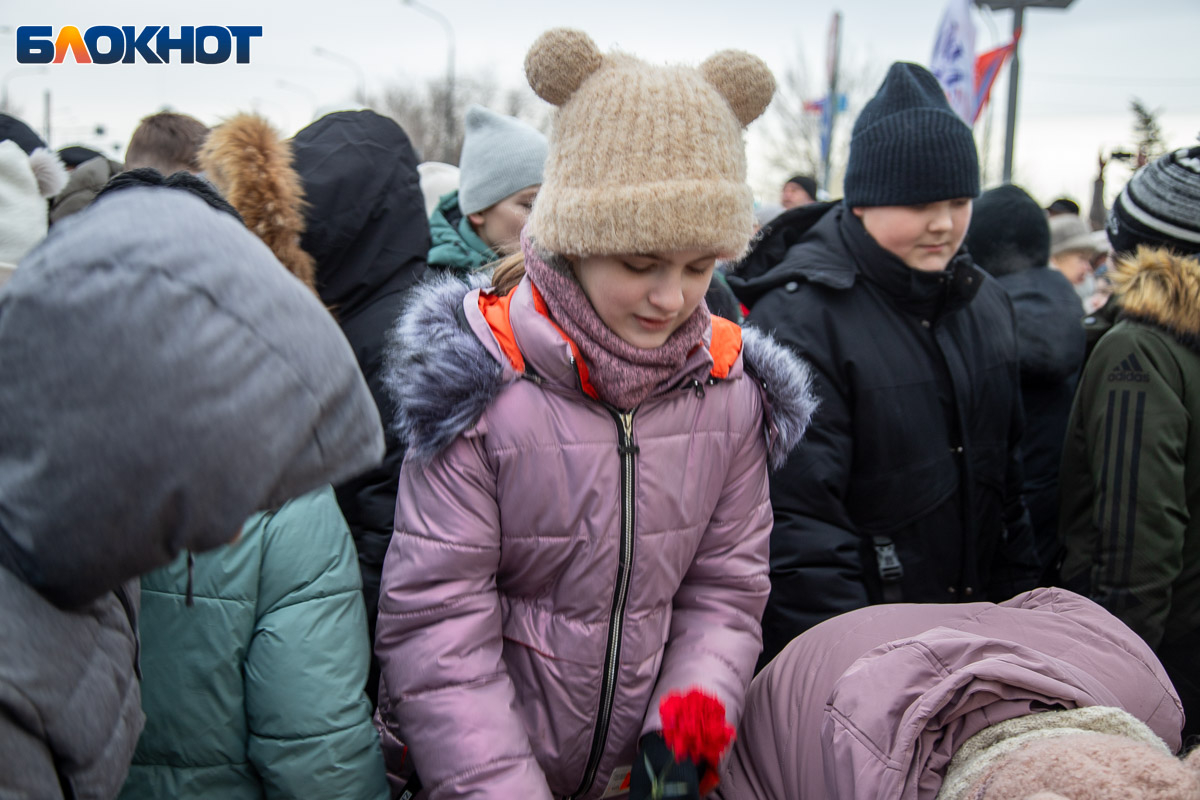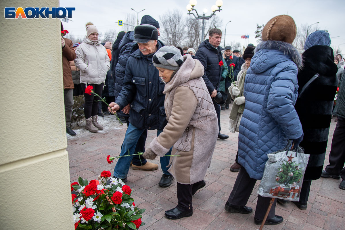 С самого утра площадь у памятника, который с 1986 года встречает гостей на въезде со стороны Волгограда, заполнилась людьми. В траурной церемонии приняли участие все, для кого история города не пустой звук: убеленные сединами первостроители и члены Совета ветеранов, руководство города во главе с чиновниками администрации, депутаты, а также совсем юные волжане — школьники и студенты.