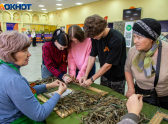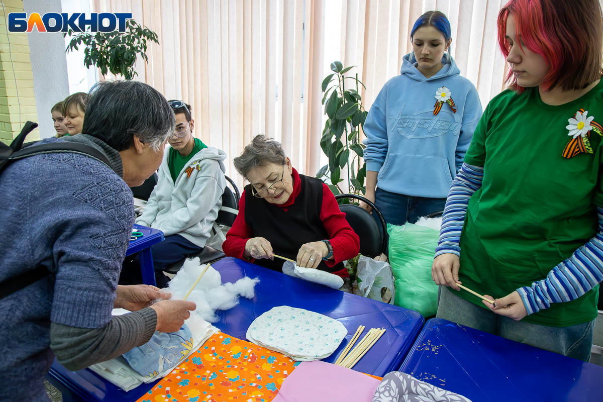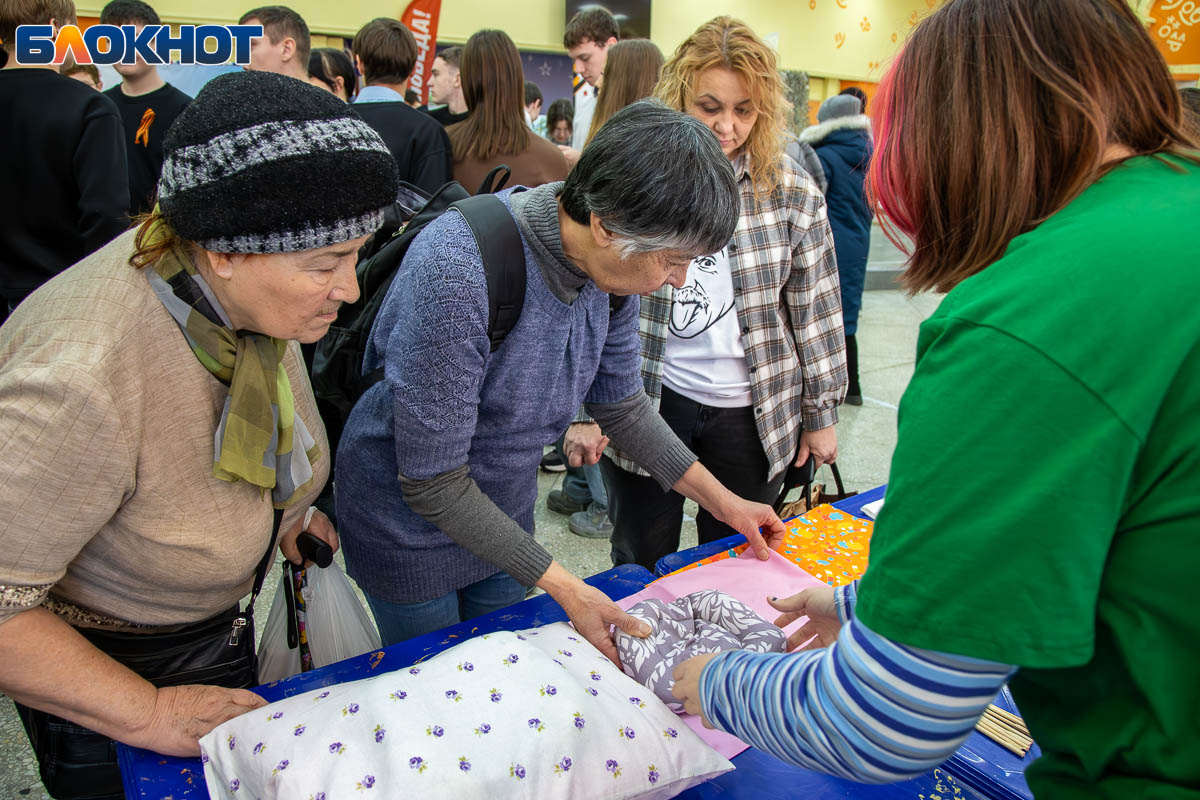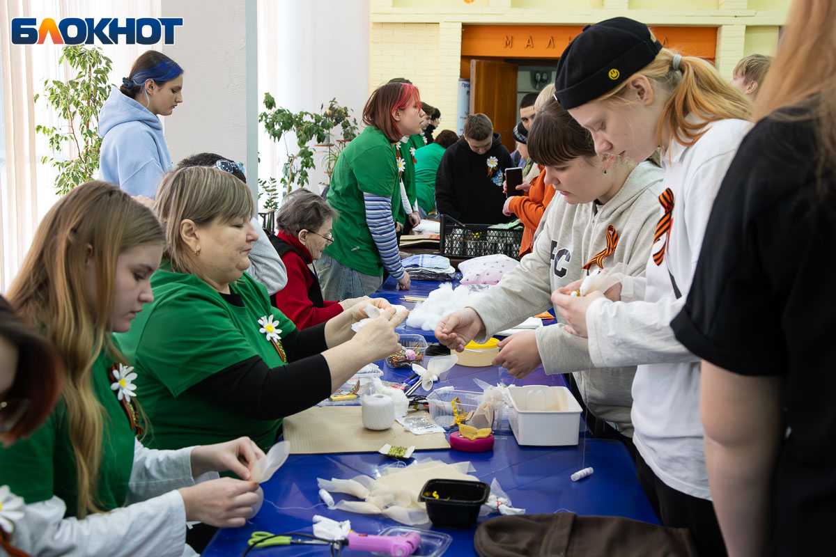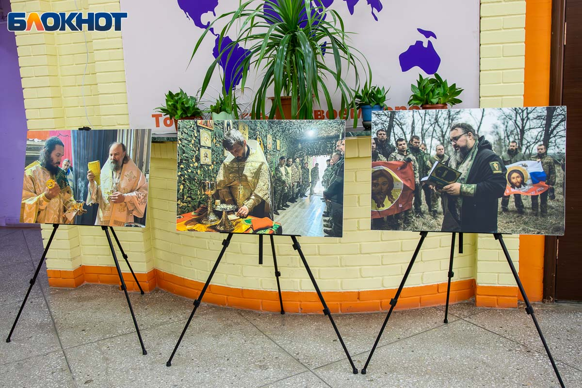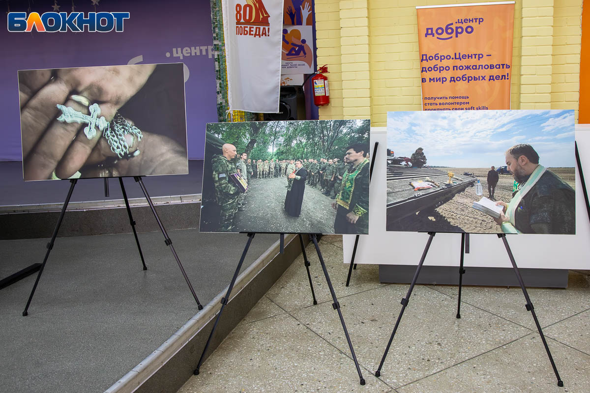 Особой частью программы стали мастер-классы волонтёрских объединений. В фойе работали площадки движений «Волжский ZOV» и «Ромашка»: здесь плели маскировочные сети, изготавливали окопные свечи, обереги, подушки для транспортировки раненых. Рядом развернулась выставка «Православные священнослужители на СВО».