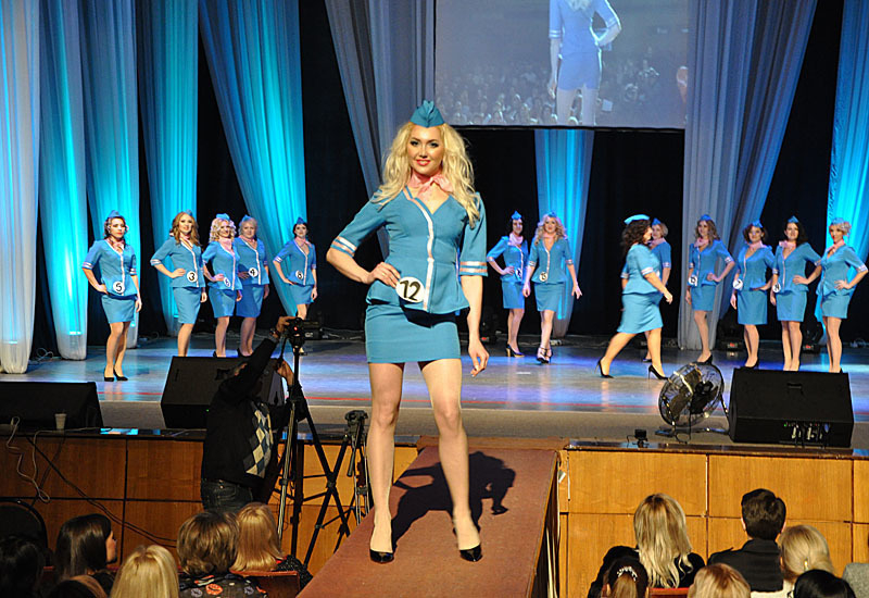 Конкурс начался с прилёта красавиц в образе стюардесс, сошедших с самолёта красоты. Участницы в строгих облегающих костюмах устроили короткое дефиле на подиуме и показали свои красивые формы.