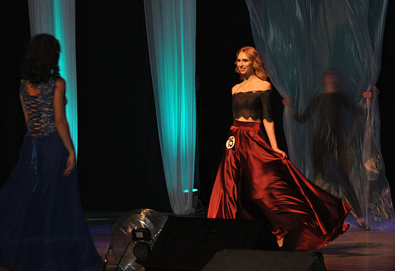 Во втором этапе конкурса «Дефиле» участницы продемонстрировали свои вечерние платья. Конкурсантки по разному подошли к выбору наряда. Кто-то выбрал платье поярче и с помощью большего количества пайеток блистал на подиуме, как голливудская звезда. Так, например, Татьяна Избякова в ярком алом платье сияла на сцене без софитов. Кто-то выбрал более скромное по цветовой гамме, но при этом броское и не теряющее элегантности платье. Победительница голосования на сайте "Блокнота Волжского" Елена Яшина выбрала для подиума чёрный топ с длинной до пола юбкой, на которой красиво «играла» ткань.