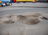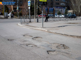 Четвёртый участок — улица Машиностроителей (около домов 29А, 29Б, 29В и соседних зданий). Состояние асфальта здесь вызывает серьёзные опасения: глубокие ямы и просадки заметны даже издалека. Местные жители отмечают, что ситуация ухудшается с каждым годом, а после зимы повреждения становятся критическими.
