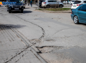 Второй проблемный участок — въезд в город по проспекту Ленина, в районе супермаркета «Супер Магнит». На подъезде к магазину асфальт буквально рассыпается: видны широкие трещины и провалы. Особенно тяжело приходится общественному транспорту — автобусы и маршрутки буквально «прыгают» на неровностях.