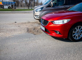 Первый адрес — улица Спортивная (конечная остановки маршрутки № 6А, возле бывшей автоколонны). Здесь заметны глубокие выбоины, которые после таяния снега стали ещё более выраженными. Водители вынуждены резко маневрировать, чтобы их объехать, — это создаёт риск ДТП, особенно в часы пик.