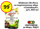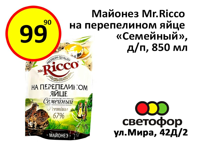 Майонез «Mr.Riccо» на перепелином яйце 99,90 рублей