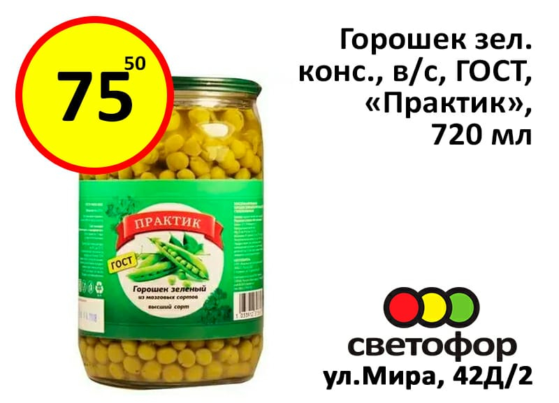 Горошек зеленый консервированный - 75,50 рублей