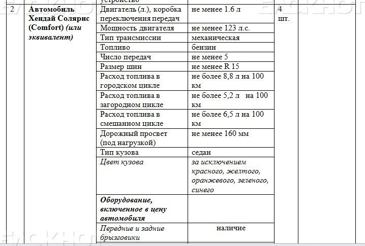 Согласно техническому заданию, автомобили озвученных марок должны располагать базовой комплектацией. При этом их цвет может быть любым «за исключением красного, желтого, оранжевого, зеленого, синего, голубого». Новости на Блoкнoт-Волжский