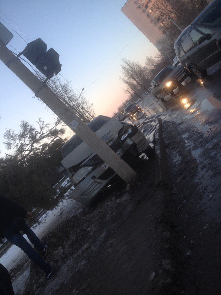 Уходя от столкновения участник ДТП вывернул руль и заехал на обочину, где врезался в столб. Водитель автомобиля просит посодействовать волжан в поисках виновника, так как после ДТП он бессовестно покинул место ЧП.