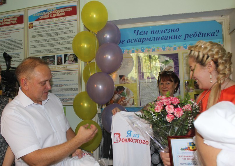 28 июля в перинатальном центре № 1 города Волжского родился 100-тысячный малыш. Матерью счастливчика стала коренная волжанка София Вержбицкая. По словам молодой мамы в перинатальном центре ей оказали профессиональную и моральную поддержку, благодаря чему роды прошли легко. Долгожданный первенец пары родился абсолютно здоровым, весит 3400 г и имеет 9 баллов по десятибалльной шкале Апгар. Накануне, 4 августа маму и малыша выписали.