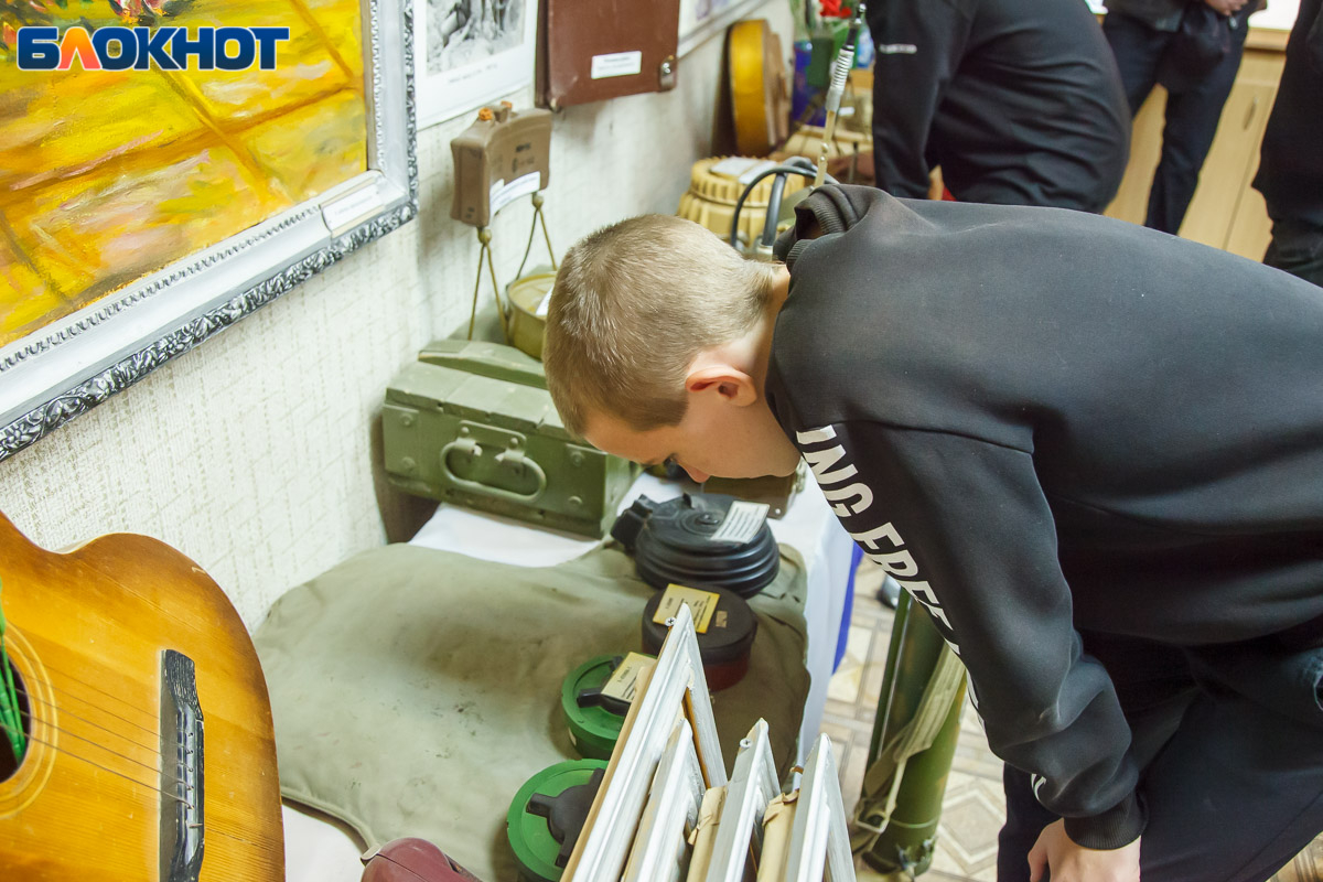 В музеи было представлено множество экспонатов. Вячеслав Михайлович показывал и рассказывал ребятам про то, как в то время оказывали медицинскую помощь, какое применялось вооружение, какую в то время носили одежду и так далее.