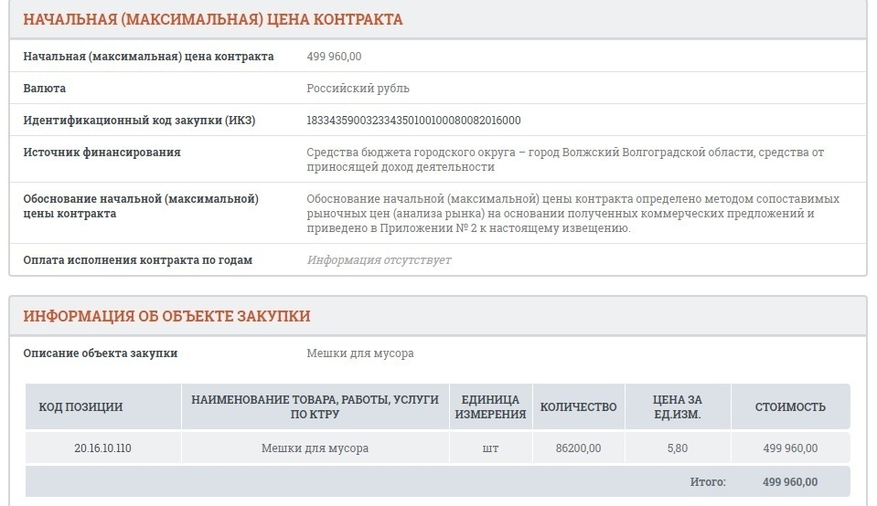 Как стало известно журналистам "Блокнота Волжского", на сайте госзакупок появилась информация о поставке пакетов для мусора.