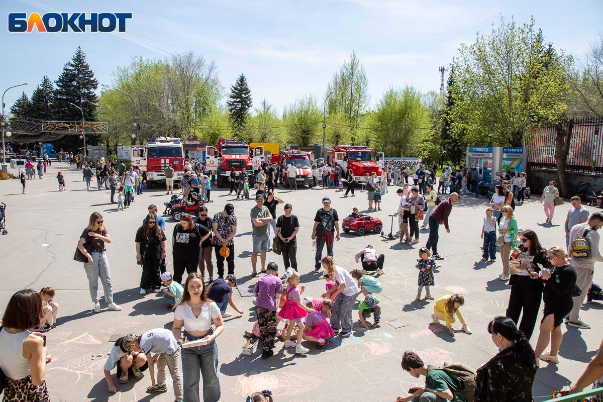 На площадке были представлены автоцистерны и аварийно-спасательные автомобили пожарно-спасательных частей Волжского. Жители ознакомились с оснащением машин, а для детей организовали викторину на знание правил обращения с огнём и конкурс рисунков на асфальте. Участники получили сладкие призы.